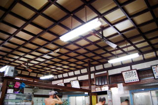 2010.11.1(月)・・・ふろいこか〜まであと6日! まいはーい。松本康治です。 ワタクシ、昨日までカウントダウンの日数計算を間違えてました。1日多めに数えてましたね。ほんとうは昨日で「あと7日!」でしたわ。 まあようするに、今日から数えてあと6回寝たらふろいこか〜なのです。ほほほ。あほってやーね。 さて、昨日はイベント会場となる寿温泉さんの番台までをご紹介しました。 しかしイベントのメイン会場となるのはその先、脱衣場であります。 この脱衣場がまた渋い。 まずは上を見上げてください。なんといってもこの豪勢な折り上げ格天井が泣かせます。 ![]() 隅々まで見逃せない宮大工の技術、格調高き広々空間。これぞ正調ニッポンの銭湯の姿でございます。 んでその天井には随所にこのような素敵なモノたちがヒソカに息づいているのであります。 ![]() 信じがたいことにみなさん、このレトロな昭和文化ミュージアム空間において、こともあろうに一糸まとわぬ全裸になることが許されているというからオドロキです。 嬉しいではありませんか。その幸せを噛みしめながら靴下など勢いよくシュポポッと脱いでしまおうではありませんか。 (注:あくまで普段の話。イベント当日は寿温泉の定休日ですので裸になるのはおやめください) さて、浴室の戸を開けて湯気の国へ足を踏み入れると、そこは石の世界です。 石畳の床に、石の湯船。湯船の周囲の段から洗い場のカラン下まで、どっしりとした御影石でできています。 石の湯船は冷めにくく、湯冷めしないと言われます。あったかな石の段に腰かけて放心するのもオツなもの。 ビビンバも石焼のほうが200円くらい高いわけで、贅沢な気分で風呂を楽しむことができるのです。 江戸時代に喜多川守貞という人が書いた本に、大阪の銭湯の床は石造りであると書かれています。対する江戸の銭湯の床は木の板だったようです。 寿温泉さんで堪能できる石づくりの浴室は、なんと江戸時代からの大阪銭湯の伝統だったのですね。 ここでまたわれわれはスッポンポンで150年前の世界へとタイムスリップできるのです。 こんな美しいタイルも使われているイベント当日は、女湯側のこの浴室の壁にも、ラッキー植松さんによるイラストエッセー「浪花銭湯漫湯〜記」が掲示されます。あったかな石の感触をじかに感じながら、ゆっくりとご鑑賞ください。 今回のイベントには特典として、参加者全員にもれなくこの寿温泉さんの特別入浴券がついてきます。12/7までの1ヶ月の間、その券を持ってきて寿温泉さんでのご入浴をぜひお楽しみください。 じつはこの浴室には、奥に秘密の部屋があります。それが何なのかは、実際に行かれてからのお楽しみです! |