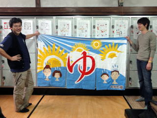 2010.11.3(水)・・・ふろいこか〜まであと4日! まいはーい。松本康治です。 だいぶ迫ってまいりました。ご予約も順調にいただいておりますが、まだまだやること山盛りでございます。 ところで公式サイトのプログラムには当初載っておりませんでしたが、大阪でも暖簾オークションをやることが決定いたしました! 会場となる寿温泉さんで実際に使われていた干支の暖簾です。 京都会場では、日の出湯さんで実際に使われていた暖簾がオークションに出品されましたが、京都の暖簾は小ぶりで男女別々の2枚セットでした。 でも、知られているようで意外に知られていないことですが、京都の暖簾と大阪の暖簾は違うのです。 大阪の暖簾はジャーン! こいつです! ![]() 1枚の迫力ある大型暖簾です。大阪では男も女も仲良く一緒にこの暖簾をくぐるのです。 寿温泉さんでは、いったい何人の善男善女があったかいお湯を求めてこの暖簾をくぐったのでしょうねー。 暖簾オークションはイベント当日のプログラム最後に行なわれます。 ぜひあなたもこの貴重な暖簾をゲットしましょう。意外に安く手に入るかもしれませんよ! ちなみに、写真左は不肖ワタクシですが、右側で暖簾を持ってくれているカッコイイお兄さんは誰でしょう。ワタクシと違って醜い腹の突出もありません。 もちろんこの方も当日会場に来られますので、当日ナマで要チェケラッチョ! |