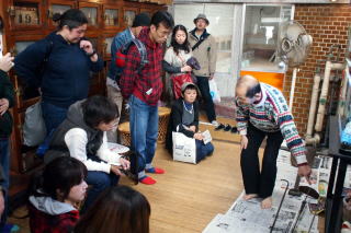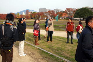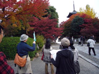 | 天候にも恵まれ、無事に終了いたしました。 ご参加くださったみなさま、桜湯さん、ありがとうございました。 ![]() (左)まずは営業前の桜湯さんへ (右)ご主人に釜場の話などをお聞きしてから内部見学、そして荷物を預け・・・ ![]() (左)鴨川の河原を歩いて出発です (右)川の中の飛び石をピョンピョン越えて・・・ ![]() (左)京都大学の時計台を眺め (右)吉田神社へ到着 ![]() (左)どんぴしゃの紅葉真っ盛り! (右)真如堂の三重塔 ![]() (左)紅葉の下であま酒を飲んだりしてちょっと休憩 (右)歴史上の有名人が眠る墓地にはへんな地蔵・仏像がいっぱい ![]() (左)途中、常盤湯を経由して (右)八ツ橋の総本家でちょっと買い物 ![]() (左)本家と総本家を食べ比べたら (右)夕暮れの桜湯に戻り、ぬくぬくのお湯に浸かってシアワセ〜!