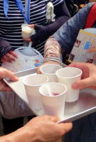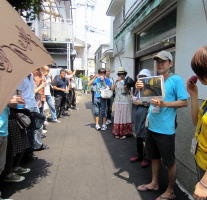 | 参加者アンケート (回収16名) ■今回の催しをどのように知りましたか? ネット検索で見つけた(2) 以前から見ていたサイトで(8) ツイッター(0) フェイスブック(1) 知人からの紹介(2) その他(2) ■参加しようと思ったのはどうしてですか? 銭湯が好き(13) まち歩きが好き(9) 新長田に関心があった(7) その他(1) ■楽しかったですか? とても楽しかった(15) まあまあ楽しかった(1) まあこんなものか(0) いまいち楽しくなかった(0) ■気に入ったポイントは? ・駅前〜大正筋エリア(10) [鉄人(4) ぼっかけ牛まん(4) 三国志の石像(1) 扇港湯(7)] ・漁港エリア(9) [海泉寺(2) 駒林神社(2) 腕塚(1) フレンド(5) 長田漁港(2) 蛭子神社(1)] ・六間道〜丸五市場エリア(11) [六間道(2) マルヨネ(2) 丸五市場(3)] ■また参加したいと思いますか? とても思う(13) 思う(3) あまり思わない(0) どちらともいえない(0) ■ご感想やご意見など、ご自由にお書きください ・とてもコース設定がよく考えられてあると思います。また参加したいと思います。(男) ・2時間半の歩きの中に見るポイントがたくさんあって、食べながら歩くのも久しぶりでとても楽しかったです。(女) ・下見等、準備していただき有難うございます。新長田駅のごく周辺しか来たことがありませんでしたが、六間道商店街等、興味深かったです。(男) ・扇港湯の細長いくみ出し浴槽が非常によかった。早く入って、あそこの湯で体の泡を流したい。(男) ・今回も街の魅力を再発見できました。(男) ・暑い中でしたがフレンドに救われ、香川真司選手のサインも見て、おいしいもんもりだくさん、市場と風呂はサイコーですね。(女) ・暑い中、ありがとうございました。とても勉強になりました。(男) ・なかなか長田に来る機会がないので参加しました。ぼっかけは美味しかった。てくてく銭湯で食べるものはいつも美味しくてお腹が満たされます。(女) ・開店前の銭湯を見ることができて、おもしろかったです。食べ歩きも楽しかったです。(女) ・暑すぎて早く風呂入りたい。(男) ・大変お疲れさまでした! 暑い中少し心配はありましたが、そう長い距離でもなく、海からの風が気持ちよくて楽しかったです。食べ歩きポイントが多くてすばらしく楽しいです(笑)。扇港湯さんもありがとうございます。最高!(まだ入ってないけど)(女) ・京都からはなかなか来る機会のないエリアで楽しかった。ガイドの工夫が随所に見られてよかった。(男) |