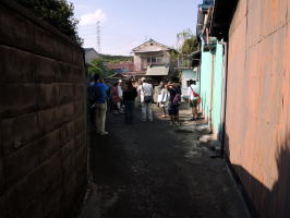 無事終了いたしました。 ご参加いただいたみなさん、白浜温泉さん、白浜地区のみなさん、ありがとうございました。 ![]() (左)姫路おでんを食べながら待ち合わせ (中)松原八幡のイチョウ巨木 (右)ポン菓子やさんが来てました ![]() (左)白浜温泉の渋すぎる浴室棟と煙突 (中)おかみさんが描いた暖簾 (右)昔ながらの屋台道へ ![]() (左)手作り味噌の小松屋さん (中)甘酒ヨーグルト (右)小松屋の屋上から見るまちなみ ![]() (左)小松屋のご主人 (中)こうじ米 (右)味噌の試食 ![]() (左)マチュピチュだー! (中)産道みたいな参道の奥の子宮みたいなお宮さん (右)今はなき白浜浴場組合の入浴券で入浴 |