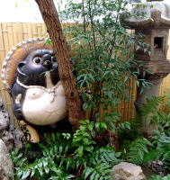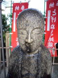 ![]() (左)堂々の薪沸かし (中左)西念寺のユニークな石仏 (中右)やっぱ水風呂! (右)庚申湯のマスコット |