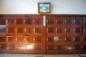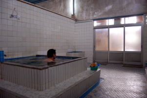 ![]() (左)深井中央温泉のレトロモダンな玄関装飾 (右)大阪で最も美しいとも言われるケヤキの脱衣箱 ![]() (左)天然水100%薪沸かしです。木をくべてみよう! (右)かわいいお風呂、何もない贅沢! 写真展&トークライブは銭湯の隣の母屋です |