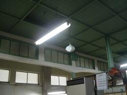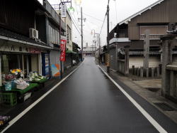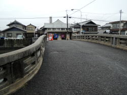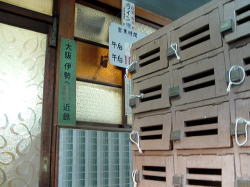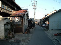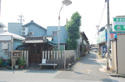 一宮から木曽川方面へ盲腸のようにのびる名鉄尾西線。終点の玉ノ井駅を出て左へ行くと、すぐに右手に廃材と煙突が見えてくる。まぎれもなく銭湯の裏口だ。 路地に面した正面へ回ると、なんとも郷愁感にあふれた古民家ふうの玄関が現れる。門と玄関の間はヒサシが張り出し、それを松の木が突き抜けているさまがよろしい。ヒサシを支える柱が水色に塗られているのもかわいらしい。なんとなく、ほっとするねぇ。 男女の暖簾の間にはタイル絵があるが、営業案内やローン広告に隠れているのが残念だ。 サッシ戸を開けて中に入ると、タタキにベニヤ補修の番台があって、おやじさんがいる。愛知名物の金属製スキマ下駄箱もあり。 脱衣所の天井や床などは新建材で補修されているが、男女壁あたりを中心に、くたびれムードが漂う。とくに冷蔵庫は濃い。脱衣箱は木製で、色つきの透明フタがはまっている。 台上に置かれた小さな飼育箱の中で、夜店でもらった金魚が大きく育っている。それをおやじは流し台に持って行って、蛇口の水でそのまま水を換えた。「井戸水だから元気なんだよ」。 ここでウッと声が出た。浴室入口の上部壁に、端から端まで男女ぶち抜きの長大なモザイクタイル画がある。 松島だ。なんで濃尾平野で松島なのかはわからんが、こいつはすばらしい。 浴室へ進むと、中央に楕円形の深浅主浴槽がある。 びっしり貼り込まれた1cm角の豆タイルが磨耗して色が抜け、白々と不思議な光沢を放っている。湯舟の周囲を取り囲むように床面にも青い1cm角タイルが貼られており、その他の部分は六角形の白タイルで埋め尽くされている。 やや熱めの湯は、肌触りがやわらかい。金魚がいきいきと育つわけだ。玉の井という地名はこの水質から来ているのかな。 主浴槽の端には真鍮の給水カランがあるが、もげたレバーの代わりにスパナが取り付けられているのがシュールでよい。 奥にも2槽あり。こちらは濃厚な緑白色の薬湯で、片方はデンキ風呂になっている。この2槽のフチに使われている細かいタイルも渋い。 壁は白タイルで装飾はない。 カランまわりには薄ピンクの細かい豆タイルびっしり。カランは自動調温で一人1本ずつ。だが自動調温といってもスーパー銭湯にあるようなのではもちろんなくて、古典的銭湯用品で、しかもこれまたレバーがもげて、今度は糸巻きの芯みたいな木の棒で代用してあったりするのがおもしろい。 おやじさんによると、建物は昭和のはじめか大正の終わり頃のものらしい。昭和14年に先代がここを購入したが、「そのときワシはハラに入ってた」。 昭和34年の伊勢湾台風のときに屋根が吹っ飛んで壁が落ち、奥にあった富士山の絵もつぶれたので造りなおしたという。 玉ノ井は繊維の町だった。朝鮮戦争の前後は「がちゃまん景気」と呼ばれ、夜中の12時ごろまで工場が動いていた。そのため銭湯も遅くまで営業したそうだ。だが伊勢湾台風のころからダメになった。 もと繊維・染色関連の工場のうち、いくつかはスーパー銭湯になったという。敷地が広く、水周り設備ができているので転用しやすいらしい。 おやじさんは織物にかなり詳しい。話を聞いていると、景気の良かった頃の繊維工場の様子が目に浮かぶようだった。 それぞれの町に、それぞれの銭湯の歴史じゃのぉ。 (2008.7.5) |