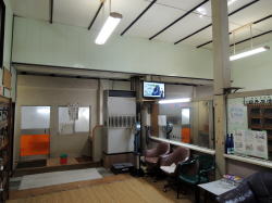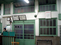 一宮駅から南へ徒歩数分。 商店が途切れて住宅地になるあたりに、変わった建物が。これまでに見たどの銭湯にもあまり似ていない。洋風は洋風なんだろうが・・・。パステルグリーンに塗られた木製の玄関戸や窓枠が周囲に異彩を放っている。 ![]() (左)木とコンクリとタイルの不思議な調和 (右)なかなかのレトロっぷり とにかく入らねばな。 戸を開けると間口分のタタキ、番台にばあさんが座っている。 ほお! 中は壁が白く塗られ、そして木製部分はすべて外装と同じパステルグリーンで統一されている。 天井はかなり高くて広々。フームフーム、未体験な空間だが、なかなかよろすいじゃありませんか。しかしこれ、どっかで見たような、この雰囲気・・・。 そうだ、わかった。どことなくウエスタン調なのだ。 ウエスタン。ヒヒーン、バキューンバキューン。シェーン、カンバーック。 ![]() (左)下駄箱は中が見える金属フタ (右)窓いっぱい、番台もパステル 格天井、浴室手前の欄間も味わい深いロッカーはチープな集成材もの。俺は荒野のガンマンよろしく素早く裸になり、股間に拳銃1丁を構えてバーンと浴室へ。 ここは改装されていてあまり古さはない。ただコンクリ天井のペンキはかなりハゲており、過去の激しい銃撃戦のあとをうかがわせる。 中央に主浴槽のある大阪スタイルだが、周囲の座り段はない。隣に電気風呂、さらに奥にジェット浴槽がある。気泡も快調に噴出しているあたり、保安官の腕は確かなようだ。 カランは一部を除いて一口式の新型銃。立ちシャワーがあるので、返り血を洗い流すのにも便利だ。 番台のばあさんによると「戦後の建物」だそうだが・・・たぶん南北戦争のことだろう。 (2005.4.8) |