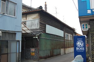 名鉄津島駅から西へ10分ほど歩くと、本町通りという古い街道筋に出る。 その1丁目、街道と街道が交差するところに市神社という社があり、向かいにも小さな祠がある。その奥に風呂屋の煙突が見えている。 祠の背後の建物に隠れるように、古めかしい木造板張りの倉庫っぽい建物だ。 しかも玄関は通りに面していないため、暖簾が下りていなければここが銭湯であると気づくのは難しいかもしれない(普通の人なら)。 ![]() (左)祠の脇の路地を入る (右)開店前の玄関部分 4時の開店を待って暖簾をくぐると、合板で補修された番台があり、ほがらかなおかみさんがいる。350円とは嬉しいねぇ。番台の上部には、焼け跡から掘り出されたような煤色の招き猫が置かれている。 タタキの隅には東海式の隙間の開いた下駄箱。たいてい金属フタがついているけどここは木製だ。 コンパクトな脱衣所は、ロッカーだけアルミ合板ものに替えられているが、そのほかは男女壁や窓枠など相当な年季だ。壁面や天井はチープな板張りだが、かなりの変色が見られる。 それでいて玄関壁や浴室入口周辺にはさまざまな豆タイルやクラッシュタイルがびっしりと貼り込まれていて、どっしり感もある。 そして、古いけどちゃんとクーラーが効いているのが有難い。 浴室に入るや、「おおっ」と声が出た。 男女壁に接して深浅の主浴槽があり、浅風呂のほうがやや狭くなっているのだが、その湯船に使われているタイルがなんともいえぬ色に染まっている。黄ばみの沈着した象牙色とでも言おうか、恐竜の化石色とでも言おうか。 湯舟の角の曲線処理が優美なラインを描いていることもあって、なんともふしぎな印象を感じさせる湯舟だ。 そこに満々と湛えられている湯は、薄い茶色をしている。緑がかった茶色だ。これは入浴剤なのか元々の地下水の色なのか。タイルの色もこの湯によって染まったものと思われる。 しかしまあ、湯ざわりはじつにまったりと心地よい。薪沸かしのせいもあるだろう。湯温も俺にはベストのやや熱め。ジェットが1本、勢いよく噴出している。 奥にも2槽ある。一つは熱いバスクリン湯、もう一つはぬるめの電気風呂で、こちらはかなり濃い茶色の湯だ。なにかの入浴剤なんだろうが、よくわからない。 奥壁の上部には、男女ぶち抜きで富士山のモザイクタイル画がある。が、そのちょうど山頂部から下まで、びりびりとヒビ割れがある。 天井は、四角い湯気抜きのワク部分を、下から金属の棒が支えている。 カランの水はびしっと冷たくて、この日のように暑い日にはことのほか気持ちがよい。が、この水も薄い茶色に染まっている。そして水の中に湯の華のような茶色い破片が混じっている。これも地下水に含まれているのか、それとももしかして汲み上げポンプの腐食によるものなのか・・・。 最初はギョッとしたが、まあどっちにせよ鉄分だろうし、使っているうちに気にならなくなった。 上がっておかみさんに聞くと、お湯が茶色いのは、やはり井戸水に鉄分が多いせいらしい。「このあたりは水が悪いでねえ」とおっしゃる。 おかみさん夫婦は47年前に経営を引き継いだが、その前に何代か代わっている。築何年かはわからないが、とにかく古い建物のようだ。 お客は開店1時間ほどの間に、男湯は3人ほど。女湯はもう少しおられたかな。 かなりのボロ銭であることは確かだが、まったりとやわらかい茶色の湯と不思議な湯舟が妙に印象に残る銭湯だった。 (2008.7.5) |
