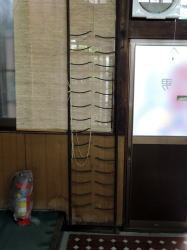 名古屋から名鉄に乗って岐阜方面、「二ツ杁(ふたついり)」という奇妙な名前の駅で降りて徒歩5分ほど。 美濃路と呼ばれるイカニモな旧街道筋をゆくと、道からスポーンと引っ込んだところに2階建ての町家づくり、これがまた銭湯なんだわ。 ![]() (左)街道筋から奥まって (右ちょっと)ふしぎな玄関タイル 見た目からしてええ感じに脱力かもして膝裏カックン攻撃なんだわ。 暖簾をくぐるとタイル敷きのたたきに年季の入った番台があって、脱力系のおかみさんがおられる。隅には名古屋圏スタンダードな金属フタの下駄箱配置。 履物を脱ぎ捨てて脱衣所に上がれば、これまたいにしえ加減と安っぽさ加減がちょうどええ具合にブレンドされたローカル空間に包まれてまって、無意識にため息3連発なんだわ。 ![]() (左)タタキ激渋 (右)チープな天井がっしり支え ![]() (左)壁はブロック積み (右)脱衣場と浴室の接続部分が吹き抜けサンシャイン といいつつコンクリブロック積みムキダシの壁面にギョッとさせられるわ、浴室手前の明るくモダンなしつらえに感心させられるわで、独自の味わいがなかなかのインパクトなんだわ。 浴室もクラシカルな雰囲気が充満しつつも、よく磨かれて設備もなかなか充実しとるで。 ど真ん中に堂々と深風呂、赤い豆タイルの縁どりが渋い。熱めの湯だが、熱すぎたら湯船の隅の大カランをひねると水が出るんだわ。 奥壁沿いには、ジェット・デンキ・高温薬湯の3浴槽が東京銭湯みたいに並んどる。デンキは3種類の搏動が繰り返される手の込んだ仕掛けだで。 湯上りはまたもや脱力の脱衣場で、勢いよく回る2台の扇風機に吹かれまくって脱力5割増。 表の自販機に飲み物買いに出てわざわざ脱衣場に戻ってゆっくり飲んでまった。のんびりゆったりとした気分になる、ええ銭湯だで。 (2012年7月) 初めて見る傘掛け |