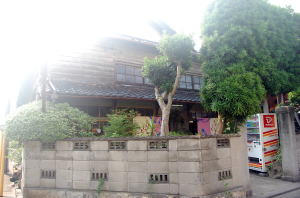 熱気と湿気でどうかなりそうな炎天下、名鉄中岡崎駅から北へ10分ほど歩いた住宅街に、毅然として伸びるレンガ煙突を見つけた。 岡崎城を意味する「龍城」は、「たつき」と読むようだ。 古い板壁の建物は年季バリバリ入母屋造りだが、正面にまわった俺は目を見張った。 左からはマキ、右からは何かの照葉樹がぐんぐん伸びて合体し、高さ5mにも達しようかという圧倒的な緑の壁となって、外界とこのイニシエ銭湯とを遮断している。 いまだかつて見たことのない外観だ。俺は、かつて尼崎にあった三十六温泉を思い出した。 その緑の城門を抜け、小さな中庭を通って暖簾をくぐる。開け放たれた横長のタタキに番台があって、おかみさんが座っている。 岡崎は銭湯料金が340円と安いのが嬉しい。 と、脱衣所に足を踏み入れた瞬間、俺はガクン! と音を立てて超絶タイムスリップ空間に墜落した。 全体の造りや内装はもちろん、マッサージ器から冷蔵庫まで、なにもかもが激しいまでのイニシエ色に染まっている。 なかでも白眉は、木製脱衣箱のフタ外面に貼り付けられた太古の昔の広告群だろう。「天ぷらのまつや」「うなぎおぎの」「八百市商店」・・・おそらく現在はどの店も残っていそうもない脱衣箱商店街は、その薄汚れ方ともあいまって、もはや脱衣箱界の「千と千尋」と呼ばないわけにはいくまい。 もうひとつ目を引くのは、脱衣所中央のテーブル上に置かれた60cm水槽。尋ねると、アフリカツメガエルが2匹入っているのだとおっしゃる。なぜにアフリカツメガエルなのか。 脱衣所中央付近に設置された一人用サウナ室も見逃せない。高さは150cmくらいしかなさそうで、過去最小サイズだ。 さらに浴室入口横の流し台の下部には、青っぽいマジョリカタイルが数枚残存している。 これらの妙なる調和によって、この脱衣所のミラクル性は他の追随を許さないものとなっている。 タイル張りの浴室もイニシエ色は濃厚だ。 中央付近に深浅の主浴槽、奥にデンキと薬風呂。どれも湯量は少な目だが、薪沸かしの湯はやわらかい。 壁画などのビジュアルは何もない。気泡やジェットもないため、その場を静寂が支配している。 目を引かれるのは、外壁側の洗い場周辺だ。 細かい楕円形の豆タイル(青い柄入り)がびっしり貼り込まれた基部にカランが取り付けられているが、その手押し部分がゴールドの真鍮むきだしで、しかもスプーンのような形になっていて、先端の丸い部分に「ゆ」「水」と掘り込まれている。 そこをガキッと押して水を出す。その堅さ、使いにくさ、水圧の弱さが逆にある種の感動を呼び起こす。ここまで無骨なカランは記憶にない。 上がっておかみさんに聞くと、大正13年の建物だという。おかみさんは昭和35年にここを引き継がれたが、その前に2度、経営者が変わっているらしい。 昔は奥壁に富士山の絵があったそうだ。 とにかく貴重。 (2008.7.4) |