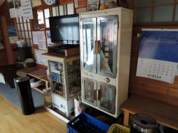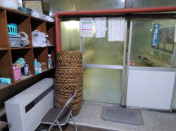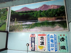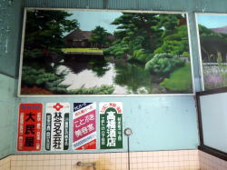 西若松駅からなら5〜6分だが、鶴ヶ城から20分くらいかけて歩いてたら雨がポツポツきやがった。 古びた公営住宅の奥に、殺風景なネズミ色の建物発見。窓もなんもない。でも看板があるから風呂なんだろう。入口どこや? ![]() (左)市営住宅のいちばん奥に (右)ん? ど、どっちから・・・ ![]() (左)まさかこのスキマ? (右)え・・・? 建物の向かって左側はどう見ても釜場だ。しかし向かって右側はどう見ても裏口みたいだが・・・銭湯に裏口なんかあったっけ? ま、間違いない、こっちが入口だ。右側の建物とのスキマの通路だ! この銭湯は正面から入口が見えないだけでなく、わざわざいちばん狭い猫の抜け道みたいなとこから入る構造になっているぞ! パターンとしては別府の梅園温泉に似ているが、落ち葉の積もりっぷりが醸し出す廃墟オーラは、ここが客商売の銭湯であることを微塵も感じさせない。 通路奥の玄関とおぼしきサッシ戸を覗くと、営業時間は「15:30から」と書いてある。時すでに17:30。これはどう見ても廃業してるな。せっかく来たけど仕方がない。 あきらめて帰ろうと思い、来た道を戻りかけると、背後から声をかけられた。 「今おもでに居だの、おたくさん?」 振り返ると、一人の年老いた女性がいた。 「そうですけど」 「なんの御用でしょ」 「風呂入りたいと思って」 するとばあさまは少し驚き、慌てた様子で、 「もうすばらぐすだら沸ぐんだけど…」 わ、沸かしてるのか! 営業してるのか! 「あとどれくらいで沸きますか?」 「にじっぷんか・・・さんじっぷんぐらい・・・看板に電気が点ぐがら」 「わかりました。そのへん散歩して待ってます」 雨がポツポツ降り出した。傘もなければ雨宿りできそうなところもない。ひと気のほとんどない団地をウロウロ歩き、濡れながら待った。 30分を過ぎたころ、ようやく看板に灯りがともった。 これが暖簾がわり看板に灯が入るほかに営業中を示すものは何もない。 入口のサッシ戸を開けると、狭いスペースにさらに男女のサッシ戸。そこを入ると、タタキに番台の脱衣場風景がある。 高齢のばあさまが一人でやってる銭湯だから、ギリギリの状態であることは察しがついた。入ってみると、察した通りの気配が濃厚に漂っている。 ![]() (左)なぜか学習机 (右)籠と棚のみ 浴室をフト覗き込んで驚いた。こ、これは・・・! ![]() (左)奥壁にペンキ絵だ! (右)ば、磐梯山だ! くすみも剥がれもない裏磐梯の見事な絵が描かれ、その下に広告板が4枚ついている。 思わずため息が出るほどだ。 女湯のほうも気になる! 誰もいなかったので見せていただいた。 ![]() (左)こちらも美品 (右)すばらしい! 女湯の絵は、鶴ヶ城にあるナントカ庭園らしいが、こちらも惚れ惚れするような作品だ。 まったくもって驚いた。これだから銭湯めぐりはやめられへんのよね・・・。 浴室は、奥に湯船がある東京式。そこへ行くまでの浴室中央には手すりがまっすぐ伸びている。 壁側のカラン列は機能しておらず、サビ水漏れを受ける容器が並んでいて、ちょっと凄絶な光景。設備的には完全に限界が来ている。 ここがどうあそこがどうといちいち書かないが、とにかくばあさまが力を振り絞って沸かしているギリギリの銭湯であり、これが現役で営業を続けていること自体が奇跡といえる。 湯船には、彼女がせっせと薪をくべたアツアツの湯が沸いている。設備はボロだが、いいお湯だ。 俺みたいな気まぐれなヨソ者がふらっと来て、この素晴らしい絵を眺めながら湯に浸かれるのも、ひとえに彼女のがんばりによるものだ。 「もうやめよと思でます・・・」 ばあさまはいろんな話を聞かせてくださった。胸に積もる思いがいろいろおありなのだろう。 途中で近所の中年客が一人来た。 銭湯世界の奥深さが凝集されていると言わざるを得ない。 (2013.5.1) |