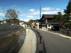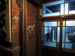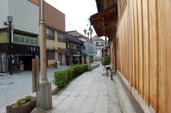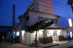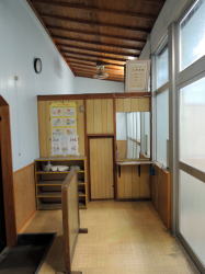 郡山から磐越東線で2駅目の三春町というところに、レンガづくりの旅館兼業銭湯があるってぇ〜? 昭和2年に建てられたまんまってぇ〜? 横浜の旅館兼業銭湯みなと湯に泊まったならば、ここにも泊まらんわけにはいくまいて。 で三春駅で下車。 すでに夜だが、ここから2kmちょっとあるんよね。駅前に何台か並んでるバスの運転手さんに聞いたら、「近くを通る」とのことで乗せてもらった。貸し切りだ。 人けのまったくない橋のたもとで降り、歩いて1分ほど。 暗くてようわからんが、たしかにレンガ造りの建物が現れた。入口には色ガラスが入ってて、なにやらただごとでない激レトロなムード。 しかしこんなさみしい田舎にこんな古い銭湯が残っているとはなぁ。 とりあえず横の真新しい新館にチェックインし、2階のこぎれいな和室に通された。旅館というより民宿テイストの小さな宿ね。 荷物を置いてさっそく風呂へ。 ![]() (左)外から見た玄関 (右)内側から玄関方面を見る。右が風呂、左は居間 ![]() (左)下駄箱 (右)男女浴室の間 外来入浴の場合、玄関を入ったら正面に廊下がのびていて、その左にレンガづくりの銭湯、右に木造の旅館部旧館がある。 この廊下のディープさを言葉で言い表すのは難しい。まるで坑道かタイムトンネルのように空気が静止し、歴史のオーラが充満している。 風呂入口のガラス宿泊者は新館から旧館の中を通ってこの廊下に出ることができる。 旧館も浴場棟に負けず劣らず渋いたたずまいだが、老築化のため現在旅館としては使われておらず残念。 銭湯と向き合った場所は経営者の居間になっているようす。ちょっとのぞいたら、おばあさんがテレビを見ながら熟睡しておられるようだった。この方が外来者から入浴料を徴収する係なのだろう。 だが浴場内へ入ると雰囲気は一変する。そこは改装された空間だった。震災でやられて修理されたのかも。 脱衣場こぢんまり ![]() (左)浴室 (右)湯船のカラン 脱衣場は銭湯としては狭いが、この規模の小宿としては広いかな。ちゃんとロッカーに鍵がある。壁や天井はピカピカだ。 浴室も銭湯としては極小サイズ。壁や天井はつるんと改装されている。でも床面は細かい玉石タイルがびっしり張られ、傷んだところは別のタイルで補修されてパッチワーク状になっている。 深浅2槽の湯船も昔ながら。へりに木の板が張られている。 湯船の内側は白い塗料で塗られているのだが、それがめっちゃツルツル。一瞬ポリかと思うくらいだが、デコボコしてるから違うのね。デコボコなのにツルツル。あまり見たことがない。 洗い場はシャワーからはお湯が出るが、カランからはいつまでたっても水しか出なかった。ふつう(レトロ銭湯におけるふつう)と逆のパターンだ。 翌朝、ゆっくりと外観を眺めた。レンガの浴場棟は上部の装飾も凝っていて見ごたえ十分。屋根はフラットだそうだ。 ![]() (左)旧館の向こうに浴場棟。新館はこの右奥にある (右)浴場棟側から。立つ人はご主人 ![]() (左)釜場の奥の浴場外壁。かつてはこっちも入口だったのか (右)釜場は2段ほど低い ご主人によると、東日本大震災による被害で浴場棟の雨漏りがひどくなり、屋根を修理しきれないので浴室と脱衣場全体を内側からくるむように改装したらしい。 またその2年前の水害では、前の川(桜川)が溢れて膝高まで水没したという。そのときも釜場などに大きな被害を受けたそうだ。 水害前の写真を見ると、ぬる湯の前の道はもっと狭く、川沿いの風情ある銭湯宿だった。今は道路もろとも大規模に河川改修されて風景が一変してしまった。 河川改修で広くなった桜川と道路現在、銭湯利用の外来客は少数で、仕事による長期滞在客がほとんどのようだ。 外観と内部廊下の激渋さに比べて浴室は変哲なく、その点で銭湯ファンとしてはじゃっかん物足りなさを感じるかもしれない。 それでも、この小さな町で度重なる被害に遭いながら、レトロな姿のまま銭湯宿として継続しているのは奇跡的だ。経営者一家の愛情の賜物だろう。 ぬる湯旅館にはホームページあり。隣室との壁はフスマ式の可動板、トイレは1階だけ、館内に自販機なしという素朴なミニ宿だ。 (2013.4.30) |