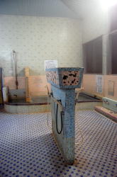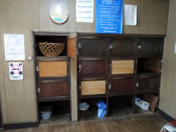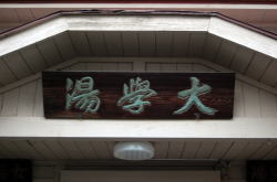 九州大学の近くだけど、俺が持ってる古い地図には載ってない大きな道路が新しくできててワケわからん。JR駅の位置まで変わってるし。 でもその道路沿いにこの銭湯を見つけた。JR箱崎駅から歩いて北西7〜8分、地下鉄箱崎九大前からなら5分とかからないだろう。 ただし煙突が目立たず、しかも道路からは側面しか見えないので、注意しないと見逃してしまう。 ![]() (左)道路に面した側面 (右)浴室下部にはレンガ塀が残る でも前に回ったら、植え込みの奥に控えた木造の建物がめっちゃステキ。なんか明治時代の小さな校舎みたい。 ![]() (左)ここだけ別世界 (右)銭湯界の最高学府 中に入ると、タタキに木の下駄箱と番台があるイニシエスタイル。 目の前の脱衣場にはスミッコに長椅子がひとつあるだけで、あとは高い天井の下に板張り床が広がるばかりの広々空間だ。木製の脱衣箱がレトロ風味をさらに引き立てる。 人柄素敵なおかみさんによると昭和7年築、床や天井も当時のままだそうだ。 浴室は、奥に深・浅・水の3槽が並び、手前両サイドにカランが配置された東京スタイル。中央に島カランもある。 床は細かいタイル張りで、天井の湯気抜きが横長のかたちをしているのがちょっとめずらしい。 上がりは、番台の手前に飲み物の小さな冷蔵庫がある。 普通は男女仕切り壁に大きな鏡があるが、ここの仕切りは板だけで、鏡は脱衣箱の横の狭いスペースにある。これも珍しいな。 夕方6時すぎ、そこそこお客が来ていた。 でも九州大学は郊外に移転しつつあるようで、大学生らしき若者の姿は見なかった。この歴史的な銭湯の灯を守るのは九大生の必修である、と言っておきたい。 (2010.12.27) 支柱も素敵 |