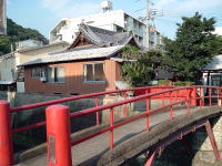 JR播但線で姫路から一つめの京口駅を東へすぐ、幹線道路に面している。小さくて古いスタイルの建物だが、塗り直されたようで小奇麗な外観だ。 ![]() (左)玄関上の屋号と温泉マークは木彫り (右)コンパクトな全景、駐車場3台分あり 中も改装済かな? と思いつつ玄関を覗く。下駄箱は新しく、入口の戸も茶色サッシになっている。が、正面に帆掛け舟のタイル絵があるじゃないの。 かわいい逸品ちょっと胸ときめかせながら戸を開けると、番台に上品そうなおかみさんが座って、なにやらパソコンをさわっておられる。 脱衣所は・・・おぉ、これはなかなかのイニシエ空間じゃないの。格天井の中央に3枚プロペラ、でも動いておらずクーラーが効いている。男女仕切り壁がなんとも渋みの効いた木製。ロッカーは昔ながらの木製だが、番号はアラビア数字。 便所を尋ねると、男便所は外らしいが鍵が見当たらず、衝立で隠しつつ女湯脱衣所の便所を借りることになった。ははは、わしゃ何にも見ておらんし触ってもおらんし嗅いでもおらん。 浴室はこれまたクラシック。細かいタイル使いの浴室で、ひび割れや剥げたタイル部分には豪快に白セメン修理が施されている。 湯舟は中央にポンと深浅のみで、周囲に低い座り段あり。おぅ、深にはヘルスパー発見! 久々じゃのう。湯舟のヘリには御影石が乗っているが赤銅色に色素沈着、地下水に鉄分が多いのかな? ただ、湯がぬるめだったのが山歩き後の俺としては残念。41度ないかも。 カランは手前に8つ、うち3つはシャワーつき。出入り口横に水鉢あり。 珍しいのは、奥壁にある絵本の挿絵みたいな壁画。森、家、海がじか描きされているが、ペンキ絵なのかな? 上がりは飲み物販売あり。夕方6時すぎ、他客は一人、帰り際にまた一人という感じだった。 (2005.8.4) |