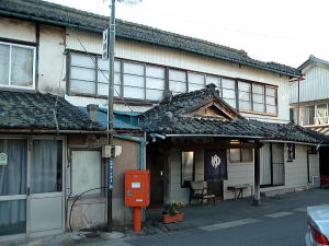 飯田線の伊那駅から西へ3分ほど。古い飲食店や旅館がひしめく、いわくありげな旧繁華街の一角に、「ラドン温泉 菊の湯」の大きな看板が上がっている。 表に外壁や玄関まわりには濃い色のタイルが多用されているが、建物自体はちょっと旅館ぽい。隣の棟続きは玄関が広い土間になっており、その軒下にも「菊の湯」という木の看板が掲げられている。かつては旅館併設だったのかな。 暖簾は石鹸メーカーの普及型ではなく、一般家庭で使うような地味な柄のやつが揺れている。 中に入ると、横長広めのタタキにこげ茶色の古い下駄箱。激しく渋い摺りガラスの衝立で脱衣所が見えないようになっている。 そして、これまた年代モノの大きな木製番台に、ばあさまが座っている。 珍しいのは、番台と脱衣所の間にカーブのついた目隠し衝立があること。タオル干し場を兼ねているケハイもあるが、関西の古い銭湯よりよっぽどプライバシーに配慮されてるな。 脱衣所はそこそこ広くて明るくて、それでいてイニシエ色の濃い、なんとも落ち着く空間だ。 ロッカーはアルミ製だが、薫蒸されたように鈍い光を放つ板張りの床や天井、こげ茶に染め上げられた男女仕切りと大鏡、冷蔵庫が置かれたタナの支え、案内板や注意書きなど激渋アイテムの数々が、郷愁爆弾となって旅人を包み込む。 とくに、タタキ&番台スペースと脱衣所とを分ける垂れ壁上部カーヴ処理が見事。これは見逃すでないぞぉ。 浴槽は改装して10〜15年といったところかな。古いものは残っていない。 中央奥に5人サイズほどの主浴槽、気泡が湧いている。あ〜こりゃ、じつに俺的適温のやわらかい湯だよ。 そしてこの銭湯の売りは、右奥の一角を占めるガラス張りのラドン室。主浴槽とほぼ同サイズの湯舟がある。壁にラドン人工温泉のくわしい説明が掲げられているが、「13秒で全身の末梢まで行き渡る」など、物理学的っちゅーか具体的に書かれていて興味深い。たしかにぬくもるよねラドンは。 両壁のカランにはちゃんとシャワーあり。島カラン(2列)にはシャワーなし。 おっとぉ、カランの水が冷たくて、めっちゃイキイキしているぞ。こいつはまぎれもなく中央アルプスの伏流水だろう。 男女壁は摺りガラスになっている。 上がりは飲み物販売あり。 かなりゆっくりとしゃべるばあさまに聞くと、「戦前の建物だろうが私はそんな前からおらんからわからん」とのことだった。 夕方4時前後、相客2〜3人。 伊那にたった1軒だけ残った銭湯は、脱衣所のイニシエとともに、ラドン温泉や良水をしっかり味わえる、なかなかのナイス銭湯だった。(2008.7.26) |