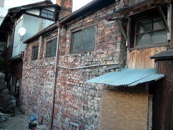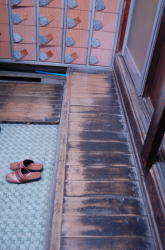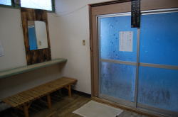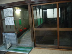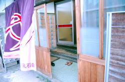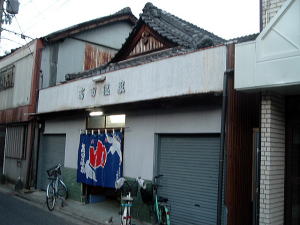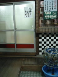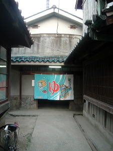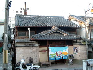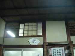 JR桜井線に乗るたび、桜井駅の少し北の線路そばに見える煙突が気になっていた。 で、この日は山之辺の道を歩く前に、まずはこの銭湯探索に直行だ。 桜井駅から北東に歩いて10分たらず。古い商店などが並ぶ狭い通りをゆくと、あの煙突がチラリと見える。かなり痛んでいる感じ。 近づくと、通りから10m近く奥まったところに銭湯発見。まだ昼前なので当然暖簾は下りていないが、青瓦の玄関小屋根の下に田舎情緒爆発系の渋い木の戸が少し開いていて、そこで柴犬が番をしている。 そのようすがもうたまらない。近寄ると、柴が元気よく吠えかかってくる。よしよし、あとでまた来てやるからなと約束して、とりあえず山之辺の道へ向かう。 これ見て入らずにおれますか、あなた?そして夕方。たっぷり汗をかいて戻ってきた。今度は暖簾がさわやかに揺れている。柴は左奥の犬小屋につながれている。 暖簾をくぐると、玄関スペースは小さなお寺のような渋い木の空間。下駄箱は新しいが、脱衣所への戸や上がりがまちの風情がたまらない。瞬時に”ほっこりオーラ”に包まれる。 使い込まれた木の引き戸をなめらかに開けると、これまた使い込まれた木の番台がお出迎え。誰も座っていなかったが、すぐに表からじいさんが来た。 ![]() (左)郷愁オーラがオーレ♪の玄関スペース (右)脱衣ロッカー 脱衣所のいにしえ度も高い。さすがはまほろばの地。前栽、木のロッカー、そして男女仕切り壁がまた泣くしかないような激渋の年代もの。 めずらしいのは天井で、ゆるいカマボコ型のコンクリ天井になっている。こういうのは初めて見た。 浴室は飾り気のないシンプル空間。 湯舟は中央にタイル張りの深風呂、その男女壁側にL字型の浅風呂がある。ジェットもなにもなし。湯舟のフチには濃抹茶色の1×2cmの細かい長方形タイルがびっしり張られている。 歩いてくたびれた体をゆったりと沈める。あぁ〜むぅ〜、・・・どうしても声が出てしまうのぉ。 湯温は深が42度くらい、浅は40度くらい。深の底面はちょっとデコボコしていて、年季を感じさせられる。 首まで浸かりながら壁に目をやると、低い位置に普通の民家的な格子窓がある。開け放たれて外気が吹き込み、なんとも気持ちいい。 カランの水はかなり冷たく、湯は思い切り熱湯が出る。これも古銭湯の味わい。シャワーもあるが湯圧弱い。 出入り口横に男女壁をぶち抜く共用の水鉢あり。お湯で茹だってはその水を浴びまくる。 水鉢の横の男女壁の下にくり貫かれた共用の排水口があり、使った湯は湯舟周りの溝からその穴に吸い込まれていく。これも古いスタイルだ。 上がりはサイダーなどの販売あり。奈良から続く山之辺の道の終点にある、素朴な味わいの銭湯だ。(2005.9.17) 外へ出ると、とっぷり日が暮れていた |