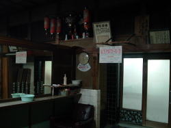 近鉄吉野線がすっかり山の中に埋没してからやっと辿り着く駅、下市口。ここで下りて吉野川にかかる千石橋を渡り、国道309に沿って南へ15分くらい歩く。 と、秋野川にかかる橋のたもとにたたずむは・・・ああ、涙ちょちょぎれダイナマイト系の銭湯やおまへんか。 川の上流に見えてくる風呂がどうの以前に、風景として素晴らしい。ジスイズジャパン。今ここに銭湯がありそれに巡り会えた奇跡がこの胸にあふれて俺は空も飛べるはず。 情緒たっぷり年季どっしりの入母屋づくり。玄関上には小さな唐破風なのかアーチ状の小屋根がついていて、そこに苔が生えている。 アーチの上には「日の出湯」の電照看板、これは三角柱を横にしたような形をしている。さらにアーチ下側には屋号にあわせた旭日海軍旗柄の装飾ときちゃうんだ。 その周辺の壁やなんやの洗い出しのイニシエ風情が俺の急所をモロに突いてくる。 早鐘のような胸の高鳴りをかかえて木の戸を開けると、ああもうこの世界に今まさに巡り会えた奇跡がこの胸にあふれて俺はいったいどうしたらもこうしたらもありゃしない。 タタキに低い激レトロ番台があるが、よく見たらこれにも真っ赤な朝日マークが入っている。その上には立派な神棚あり。下駄箱は言わずもがなの木製骨董品、鍵が木の板のデカイやつ。 脱衣所は格天井で、男女壁の上部には透かし彫りがある。 こげ茶色の木製脱衣箱には「壱、弐、参・・・」の漢数字・・・と思いきや、「弐」は中の部分が「貝」の字になっているさらに古い書体だ。 浴室入口の両サイドにはタイル絵もある。「椿」と「鶴」で、表面に凹凸があるマジョリカ風。 脱衣所中央に置かれた古い木のベンチも渋い。壁に飾られている絵などもいい味を出している。 もうこの時点で俺は前後左右から強烈パンチを連打されている状態、立っているのがやっとだ。 でも風呂に入りに来たんだった。ふらふらと裸になって浴室へ進む。 風呂場は比較的新しい白タイル張りだが、新しいといっても建物に比較しての話で、イニシエ風情は十分だ。 まず目を引かれるのは、カマボコ型天井の上部壁にあるモザイクタイル画。おだやかな山、川、森が涼やかに描かれている。 男女壁に沿って深浅の湯舟があり、ふちや外側段には黒御影石が使われている。浅にはジェットもある。 ちょうどいい湯加減のお湯はやわらかい。あとで聞くと、井戸水と水道水が半々だそうだが、水道水もこのあたりじゃ水質が悪かろうはずがない。 湯船奥の一段高いスペースには、濃緑と白、細かな笹の葉柄の見たことのないタイルがびっしりと貼られていて、思わず目を見張った。 カラン周囲にはかわいい花柄タイルが使われ、壁の中断には青っぽいひし形模様のマジョリカタイル。その上部にはガラスブロックがはめられている。 出入り口の横には扇形の水鉢もあって、見所いっぱいだ。 あがっておやじさんに聞くと、この建物は昭和元年築だが、風呂屋はその前からあったらしい。浴室は、以前は石畳の床だったそうだ。 おやじさんは元々この隣家に住んでいたが、昭和32か33年頃、この風呂屋の主人から「跡継ぎがおらんからやらないか」と言われて引き継いだ。いまは一人でお湯を沸かし続けておられる。 お客は近所の常連ばかりだが、おやじさんは一人一人に「ありがとうございます」ときちんと挨拶する、真面目で気持ちのいい人柄だ。 下市は割り箸の産地だ。昔は夜11時頃まで工場が動き、客が来たという。 現在の営業時間は午後3時半から9時だが、3時12分に客が来るので開けている。 遠いけど、銭湯好きなら間違いなく感動できる。行くしかない。 (08.8.7) 隣の吉野町の世界遺産にも負けてない |
