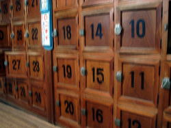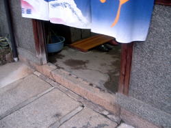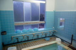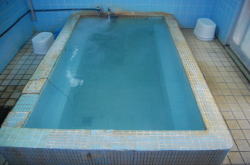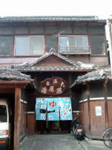 近鉄奈良駅から南東へ徒歩10分少々、福智院町バス停の手前。江戸時代の街並みが残る奈良町に溶け込む、渋い小銭湯だ。 低い番台には70歳くらいのばあさんが座り、客はじいさんが数人。脱衣場は格子の天井や剥げたしっくい壁などにひなびた味わいが色濃く残っている。 ロッカーが3ヵ所に分かれて配置されているのがちょっとめずらしい。 浴室はシンプルで、男女仕切り壁と奥の壁とに接して四角いメイン浴槽と、ややぬるい気泡浴槽が1つずつ。浴室の壁や湯船は最近改装されたようで、建物の外観に似合わずタイルはピッカピカ。 しかし床は昔のままの石畳だ。石と石の間はタイルがはめられて排水のための溝になっているパターンだが、石畳が湯船を頂点に大きく傾斜しており、しかも排水溝が下流部でぐぐっと深くなっている。 これほど変化に富んだ床を持つ銭湯はめずらしかろう。じつに味わい深し。 (03.7.11) |