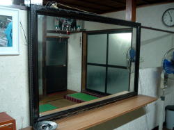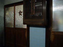 葛城古道を歩いて足くたくた。やっとたどりついた旧市街地の静かなまちなかにたたずむ銭湯。JR御所駅から南へ徒歩5分ほど。 渋い千鳥破風の平屋建てだが、暖簾をくぐると下駄箱などは新しいものに換えられている。 ![]() 昭和初期のクラシックな造り 戸を開けたら番台におばちゃんが座る。古い木のものだが外側はベニヤが張られている。 脱衣所は格天井がけっこうな高さで気持ちいい。木のプロペラが男女一つずつぶら下がっている。だが壁はベニヤで改装、ロッカーも合板モノ。 前栽部分は脱衣所を広げてマッサージ機を2台設置してあるが、ここの窓が開けっ放しで、表の通りから俺の尻が丸見えだ。開放的ですわ。 古い建物に逐次手を入れてあり、その経営努力は素晴らしい。でも、いにしえファンとしては残念・・・という皮肉なねじれ現象。 おっ、浴室の出入り口の横が山水画のエッチングガラスになっている。いいねえ、僕はこれが大好き。 浴室内部も改装済み。天井はカマボコ型だが、湯気抜きがない。改装で取っ払ったのか? 奥壁のタイルには白樺の絵が入っているが、これは既製品だな。 湯舟は男女隔壁に沿って大きな深浅主浴槽、浅いほうはジェット2連。やや熱めの湯が、くたびれた足腰にまことに気持ちよろしい。手前には電気風呂もあり、ちょうどいいぐらいの電撃。フクラハギと腰を徹底的に癒しまくる。 湯舟のフチには青竹風タイル、外側座り段やカランまわりなどには小さめ正方形の柄入り青タイルが張られている。いずれも初めて見るタイプだがじつに僕好み。でも湯のカルシウム成分なのか、水際部分に白いものがかなりこびりついている。 一見新しそうだが、後で聞くと改装後20年ほど経っているとのこと。毎日磨いておられるのだろう。 田舎の古銭湯らしくシャワーは弱めで、湯温安定せず。 宵の7時前、お客は僕を含めて3名ほどだった。 上がりは飲み物いろいろあり。 おばちゃんは神戸の灘出身とのことで、しばし神戸の話題に花が咲く。 細部は改装されているが、昔ながらの雰囲気がぼよよーんと漂う、のんびりくつろげる銭湯だ。 ちなみに、ここから東へ5分ほど歩いたところに葛城湯という激渋銭湯があるのだが、行ってみたら「しばらく休業します」との張り紙があった。宝湯のおかみさんに聞くと、この3月末に廃業されたとのこと。狂おしく残念だ。 (2005.5.21)→御所旅行記 廃業した葛城湯 |