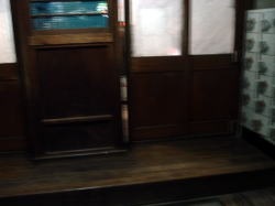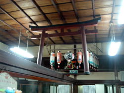 JR高田駅からならまっすぐ西へ徒歩5分、近鉄の大和高田駅からなら南へ徒歩7〜8分くらい。いかつーい四角のレンガ煙突が見えてくる。 存在感ばりばり前に回ると、高度成長期的な間口横断型の平面玄関にシャッターと、無機質に改装されてしまっている。が、上部には古〜い破風屋根が見えている。 渋銭ファンとしてはビミョーな心境で暖簾をくぐる。と、出ました、むお〜っと漂うイニシエのオーラ! 濃厚な色合いの木造空間だ。 高い格天井の手前小窓から見えている脱衣所の天井が、おいでおいでをしているよ。 ![]() (左)正面こげ茶 (右)手前は傘入れ、奥は下駄箱、みごとにこげ茶 高い格天井もこげ茶時を遡るミラクルドアをススーッと開けて、黄泉の国、もとい、夢の国へ足を踏み入れる。 いぶし銀の木の番台に、おかみさんが座る。湯銭320円、奈良県の組合料金より30円安いぞ、うれしいな。 次の瞬間、前を向いた俺は腰を抜かしそうになった。・・・な、な、ナヌーーーー!!?? ![]() ここここ、こっこっこっこれは・・・想像を絶する巨大な鳥居が、男女仕切り壁の上に天井からぶら下がっている。縦横1.5mはあるぞ! 古い銭湯ではこの位置に神棚があるのは一般的だが、その前にこのような巨大鳥居があるのはまったくもって初めて見た。 あとでおかみさんに「この鳥居はすごいですね」と言うと、 「気づかれましたか、案外気がつかない人もおるんです」とおっしゃった。これに気づかない人がいるとは信じられん。おかみさんによると、鳥居の一番上の黒と赤の木は継ぎ足しのない1本の木材からできているそうだ。 天井は、地方銭湯にしては高い。格天井ではないが、アメ色にいいツヤが出ている。おかみさんによると屋久杉なんだそうだ。 ロッカーは、アルミものを左右でケヤキ一枚板の木製ロッカーがはさむ。アルミロッカー部分は、かつては棚に脱衣籠を置く形式だったらしい。 ロッカーと上の戸袋との間の黒っぽい梁、これがまた素晴らしい材質。なんだか知らないが緻密でスベッスベ、そうとうな高級木材であることは間違いない。とにかくそのへんに使われている木がいちいち値打ちもんだ。 手前に前栽がある。狭いが池があり、ちゃんと水が張られている。 ![]() (左)木製ロッカーは手前にもある (右)この木、すごいよマジで 浴室方面を見ると、奥に長い中庭があり、その横が浴室への通路になっている。うなぎの寝床的敷地だな。 と、ここでも、な、な、ナヌーーーー!!?? あれに見えるは確かに・・・なんとその通路部分にカランと鏡が3〜4セットあるぞ。これも初めて見た。たいていここには流しなんかがあるわけだが・・・。 あとでおかみさんに聞くと、昔お客の多かった時代に、カランの空き待ちを少しでも減らしてお客をさばくために設置したものだという。そういう時代があったわけね。しみじみ。 通路横の中庭には噴水があり、暗くてよく見えなかったが魚が泳いでいる様子。しかしこの通路、裸で通るのは少し寒いな。 浴室も縦に細長い。湯気もうもうで、奥のほうは霞んでいる。 床は意外にも新し目のタイルで改装されているが、湯舟は御影石の深と浅、外側の座り段も昔ながらの石のままだ。ジェットも気泡もなんもなし。 湯をさわってみると、深が43度強、浅が42度弱のマイベスト湯温。たっぷりかかり湯して、冷え切った身体をゆったりと沈める。あぁ・・・(言葉なし) おっ、深風呂の内側にも石の座り段があるが、この段の石は底までズドーンの一枚ものだ。厚さ15cmはある巨大石材。岡山の柳湯や戎湯と同じだが、それらより磨かれている感じが好印象だ。 浅風呂には男女壁に岩があしらわれ、豆タイルの背もたれスペースが2人分後付けで設置されている。たいていこういう部分にはジェットがあるもんだが、あくまで背もたれだけ。 湯気でかすんで最初のうちはよく見えなかったが、奥壁に大きなタイル絵がある。湖に朱塗りの太鼓橋がかかっているが、後ろの山のかたちは北海道の駒ケ岳だ。とすると大沼公園だな。 カランは入口近くにシャワーなしが4組と、奥にシャワーつきが6組ほどある。圧力よし。台座部分にはこれまたどっしりと御影石が据えられている。 先客は2人いたが、やがて貸切になった。とたんに限りなき静寂が訪れる。 あがりは飲み物販売あり。スコールを飲む。 おかみさんによると築80年、大正時代の建物だそうだ。 外観から浴室まで部分的に改装されてはいるが、大鳥居、通路カランなど初めて見たもの多し。脱衣所の高級木材や石の湯舟の重量感、タイル絵なども大切に残されている。その反面、シャワーも設置されていて使い勝手も悪くない。 激渋銭湯の聖地、大和高田・・・恐るべし。(2006.1.29) 紺の鶴亀オリジナル暖簾も渋い |