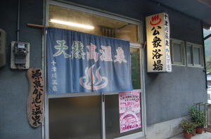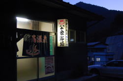 近鉄大和八木駅から日本最長の新宮行き路線バス(奈良交通)で4時間。十津川温泉は紀伊半島中央部の山奥のダム湖のほとりに湧く高温泉だ。 十津川温泉バス停の真向かいには「庵の湯」がある。新宮方面へ橋を渡ったところには「憩の湯」がある。十津川村は「掛け流し宣言」の村であり、それらの温泉施設も悪くない。 が、あえて無視して7〜8分歩くと、国道沿いのダム湖側に廃業旅館みたいな建物が見えてくる。 ![]() (左)ダム湖の色が青いのは温泉成分のせい? (右)右端の電柱の左に見える白い建物(の隣) その建物の陰に隠れるように、小さな小屋がつながっている。これだ! ![]() (左)質素そのもの (右)この看板がたまらない 十津川村に数ある温泉浴場でもダントツの素朴さ、小ささ。当サイトとしてはもうここしかおまへん。 去年あたりまでは他の温泉施設と同様に朝10時から夜9時まで営業していたらしいが、今年からは夕方から3時間半だけになった。上りの最終バスは15:59だから、ここに入ったらもう帰れない。 必然的に、限りなくジモ専(地元民専用浴場)化したといえる。 暖簾をくぐると、狭い入口廊下におばちゃんが2人ダベっているので、そのおばちゃんにお金を払う。男湯入口はすぐ横にあるが、女湯は階段を下りたところにあるらしい。十津川村には基本的に平地というものがないからな。 小さな脱衣所は板張りで味がある。古い建物だが適度に改装されていてボロさはない。木の棚にプラ籠があるだけでロッカーなし。 そして浴室へ・・・。 ![]() (左)脱衣所 (右)浴室、右から入る これまた小さい! 右上写真では右側が入口で、1mも置かずに湯船がデンとあり、その左側も1mと置かずに壁だからこれで全部。 右下写真は入口付近から洗い場を見たところ。小さな浴室の大部分を湯船が占めているプチサイズっぷりがおわからだろう。 ![]() (左)右カランが源泉、左カランは水 (右)洗い場の窓からはダム湖が見える 浴室へ入るや、やわらかい硫黄の香りに包み込まれる。湯船のへりは水色のタイル張りだが、温泉成分が茶色くこびりついている。 ナトリウム炭酸水素塩泉・塩化物泉ということで、源泉が出ているカラン周辺の湯は細かな気泡のアワアワで真っ白になっている。温泉はカランをひねればいくらでもドバドバ出てくるが、源泉温度70℃なのであまり入れると熱くて入れない。逆に水を多めに出すと、湯の白濁はすうっと薄くなる。 まったり、ふわふわの極上の湯だ。たまらん。からだじゅう、たまらん。 43〜44度の熱めをキープすれば、アワアワ加減を損なわずにじっくり味わえる。その温度調節も楽しい。 洗い場にシャワーはないが、それぞれ水と湯のカランがある。湯はもちろん源泉だ。 開店直後から45分間ほどいた。すでに先客あり、地元じいさん2人。その人らが出て貸切になったあと、40代くらいが一人来た。 山奥のヒナビのミニ極楽空間。まるで九州あたりのジモ専の趣きだ。ディープな温泉好きにとっては、もしかしたら近畿最高峰かもしれない。 狭いので人が多いとやや辛いかもしれないが、まあそういうことはあまりなさそう。 こうして思い出すだけで、今すぐにまた行きたくなる。そんな風呂だ。 上がったらもう夕暮れちなみに、バス停でいうと「十津川温泉」の次の「蕨尾口」が近い。新宮行きのバスは18時台まであるから、風呂から出て本宮・新宮方面へ移動する場合はそこを使うとよさげ。 ただし、八木方面から来た場合は「十津川温泉」で下りて歩いたほうが早い。なぜならそのバスは十津川温泉で必ず15分くらいトイレ休憩をとるから。(2009.11.7) |