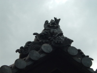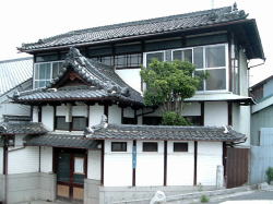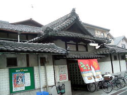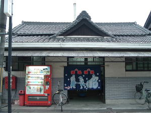 近鉄八木西口駅の西出口から徒歩1分、建売新築住宅群の中にポツネンと残る古〜い銭湯。おニューな街並みにまったく不釣り合いなオーラを、頑固に強烈に放出し続けております。 大和高田の日の本湯とたいへんよく似た外観だ。平屋建ての軒の中央に入母屋破風っぽい2段式の立派な玄関が取り付けられた威風堂々系。 違いといえば、こっちは破風に反り(てり)が入ってること。日の本湯は直線。反ってるほうがシャープで洒落者だな。 塀から玄関庇へ瓦がナナメに連なるのも日の本湯と同じさらにこっちは破風の先端にえべっさんの鬼瓦(というのだろうかこの場合?)が乗っている。そして両すそには、この界隈でよく見かけるかわいらしい桃みたいな鬼瓦。宝珠かな? ![]() (左)鯛を抱えて大笑いのえべっさん (右)ピーチだよん 暖簾をくぐると新旧合体空間暖簾をくぐって下足室、正面や上がりがまちには古〜い木が健在だ。 アルミ戸を開けると、低い木の番台におやじ。おぉー、脱衣所はコンパクトだが、建物外観にふさわしい木造いにしえ空間ですなあ。 格天井に3枚羽プロペラがぶら下がっているが回っていない。男女仕切りの上には神棚があり、前栽の一角に外便所というレトロの王道。 ロッカーはケヤキ一枚板の上等もん、しかも浮き彫り漢数字。このタイプは古くても美しさがほとんど損なわれない。昔のもののほうが今のものより優れているという顕著な例だな。 タナ上に常連の桶が賑々しく並んでいる。浴室入口には細かい角タイルびっしり。 浴室へ。カマボコ天井に大きな湯気抜きが開いており、なかなかの開放感。地元のおやじ客が4〜5人入っている(午後5時ごろ)。 床と壁は新しいタイルで改装されている。床のタイルはあまり見かけないものだが、ざらっとしてすべりにくく、なかなかよろすい。 湯舟は壁に沿って深浅2槽。ふちに紺色の細かい角タイルがびっしり張られた古いタイプで、外側を大阪式座り段がぐるっと取り囲む。 深い湯舟の湯温は42度くらい。おっ、腰痛持ちのラブリーパートナーこと電気風呂ちゃんがあるぞ。 浅い湯舟も深いほうと同じ広さがあり、こちらはややぬるめ。ジェット2連&気泡がゴキゲンで、常連客はここでくつろいでいる。しかも湯舟の内側にはくすんだ渋緑の丸い豆タイルが張られていて嬉しいな〜っと。 入口脇には新しく設置されたとおぼしき水の立ちシャワーもある。 タイムスリップ丸出しの外観と脱衣所、適度に改装されて清潔な浴室、古いが電気も気泡もある湯舟・・・と、ひたりまくれる絶好球。もしこれで冷水風呂があればホームランなんやけどな。 上がりはドリンク販売もあり。渋い脱衣所でのさらなるくつろぎタイムが保証される。 (2004.8.21) 並びはすべて新築の建売住宅。がんばれ! |