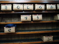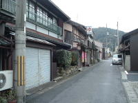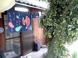 JR大津駅から徒歩2分、一番近い銭湯。 駅の左手から浜大津へ向かう商店街を歩いて1筋目を左折すると、古びた街並みに溶け込むような「ゆ」の看板が見える。 県庁所在地の中心駅から2分でコレです大津戸を開けるといきなりタタキに番台という、古いスタイル。番台ではこの銭湯にふさわしいレトロなバーサンが相撲中継を聞きながら、虫眼鏡で新聞を読んでいる。 滋賀県の銭湯料金355円を支払って靴を脱ぐ。下駄箱なんてないので脱ぎっぱなしだ。 脱衣場にはロッカーもなく、棚に籠が並んでいるだけ。おもしろいのはこの脱衣籠に書かれたヒラガナのランダム配列。バーサンに、 「この字は何? いろは、やったんですか?」 と聞くと、新聞から目を離さずに黙ってうなづく。商売気皆無。 きむしらあ、すう、せ、ふところが下駄箱もロッカーもないのに、浴室入口上部にアルプス&湖水のモザイクタイル絵があったりする。 浴室はこじんまり、天井も低い。男女仕切り壁側に、カマボコ断面型の深浅の浴槽がある。こまかいタイル張りで、ジェットつき。42度と書かれてあるが、明らかに44度くらいはあった。 そして奥の壁にもアルプス&白鳥の湖のモザイクタイル絵があり、さらに壁最上部が5色の細かい長方形タイルで飾りつけられているのが目をひいた。 客は他に誰もいない。 静けさや タイルに染み入る ジェット音 上がりは、残念ながら飲み物販売はなし。 レトロな小規模田舎銭湯の深き味わい。(2004.3.20) |