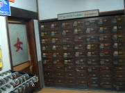 加古川駅周辺に1軒だけ残るイニシエ銭湯。古い街並みの十字路にどっしりと佇んでいる。 外観は明石・東二見の扇湯に少し似ていて、なんとも古式ゆかしい風情がある。 (右)浴室部分暖簾をくぐって戸を開けると下足室。立派な木の下駄箱だ。 ![]() (左)下足室の正面上部 (右)下駄箱たっぷり 格子天井の脱衣場も古めかしい。木でできた番台や仕切り壁は黒光りしまくり。中央の木の台に籐籠が並んでいるのがちょっと珍しい。 ロッカーは地方の銭湯でよく見られる薄緑の化粧合板モノ。浴室の戸の周辺だけ新しく改装されている。小さな庭を植物が埋めている。 浴室はやや広め。床はタイル張りで、カラン前に溝がない全体傾斜型だ。 中央にある深浅の主浴槽は、小さな古い角タイルでびっしりふちどられている。緑色が多用されているせいか、浴室全体が一種独特な色合いに染まっている。湯の温度はちょうどで心地よし。 奥には岩の張られたぬるめの浅い浴槽、入口横には水鉢がある。 壁にタイル絵が2つあるのだが、色があせているのが残念。1つは湖から見た富士山、もう1つは・・・ほとんど消えていて何だかわからない。 カランは機能していたりしていなかったり、シャワーもあったりなかったり。中にはハンドルが金属製の激レアなカランもある。 スーパー銭湯だらけの加古川だが、なんとかがんばってほしい。 (03.12.25) (左)れんが造りの角煙突 |