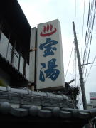 JR加古川線の西脇市駅から北へ2km弱。 染物で栄えた旧市街にある神姫バスターミナルから東へ5分ほど歩くと、杉原川の手前のローソン横に、永ちゃんのシャッターと中華料理屋が並んでいる。 おや? そのスキマがトンネルみたいになってるぞ。恐々のぞいてみると、奥になにやら青い看板と暖簾が見える。えっ、もしかして・・・。 バック銭湯、俺ヤザワよろしく ![]() (左)ここをくぐんなよベイベー (中)暖簾が見えたらヨロシク (右)オバチャンもヨロシク ![]() (左)格子状のガラス戸がシブイぜ (右)右の路地から出りゃマンボ! うーむ。秘密の路地奥にたたずむ、この穴場感がたまらない。 玄関前をおばちゃんがホウキで掃いている。ほぅ、濃いロケーションのわりに、なんかこの銭湯すごくきれい。建物は古い入母屋造りなんだが、切妻部分のしっくいも真っ白だし看板も新しいし、なかなかの美形だ。 男女別の暖簾の後ろには、格子状に擦りガラスの入った古い木の戸がある。これをガラガラと開けるとすぐタタキに下駄箱と番台、ともに新建材で改装済。 だが脱衣場は、つるつるに磨かれた年代ものの板の間がひろがっている。 見上げると格天井に3枚羽のプロペラがぶら下がる。格子に組まれた木が太めで、がっしりした感じ。浴室入口の両脇も木の柱がしっかり支えている。 ロッカーや男女仕切り壁は昭和的合板に改装されているが、その他は年季の入った木造空間で、じつに落ち着いた雰囲気。余計なものも置かれておらずスッキリ清潔な印象だ。 浴室は一般的なタイル張りに改装されていて、古さはあまりない。でも中央壁寄りの深浅主浴槽のへりには昔ながらの御影石が使われている。エエ手触りやのぉ。 浴室上部には4つの窓が並んでいるが、ここも古い木枠が健在だ。 そのくせ浴室の奥にはスチームサウナ&立ちシャワーがあるぞ。こりゃうれしいねぇ。シャワーはちょっとゆるいけど。 全体的に美しく管理されていて気持ちがいい。田舎銭湯にありがちな雑然とした感じはまったくない。 唯一残念だったのは、湯上がりに飲み物販売がないこと。脱衣場でゆっくりくつろぎたかったが、クソ暑い中を歩いてきてさらに風呂に入ったもんだから、もう喉カラカラでじっとしとれんかった。カルピスでもありゃ★つけたのにな。 (2004.7.15) ※2011年追記:現在、永ちゃんも中華料理屋も更地になり、西脇温泉がムキダシになっています。 |