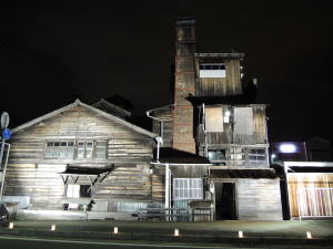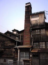 別名、「ハウルの動く風呂」。動かへんけど。 山陽電車高砂駅から南へ歩いて6~7分。十輪寺へ行く途中に見えてくる。 外観は一見、殺風景な古いビル状の銭湯だが・・・。 ファザードだけがビル状の看板建築風ところが裏手へ回ると表情が一変する。 どっしりとしたレンガ浴舎と四角いレンガ煙突、それらに寄り添うように上へと伸びた木造建築物。こんな建物、見たことがないぞ! ![]() (左)1軒で迷宮 (右)最上階に上がってみたい! 後日聞いたところによると、煙突に沿った3階部分は洗濯物干し場だそうだ。 かつてこのすぐ横を国鉄高砂線が走っており、蒸気機関車の出す黒煙から洗濯物を守るために屋上物干しが小屋化された。 この部屋では今もなお洗濯物が干されているらしい。 のれんをくぐって戸を開けると、いきなり狭い土間に渋~い木製下駄箱が置かれ、すぐ横に番台。ばあさんにお金を払って靴を脱ぐ。 そして脱衣場の雰囲気が・・・もうこれは思いっきり戦前オーラです。とくに入口付近はなんとなく古いの小学校の用務員室の入口を思わせる。 そして木のロッカー、木の古いベンチ、貫目表示のある体重計、布を張った木の衝立、柱、鴨居、玄関横にはマッサージ器の置かれた小部屋・・・。 常連客が言うには、「70年くらい前からのままちゃうか」とのこと。板張りの床はいい具合に磨耗して、足裏になんともやさしい肌触り。 女風呂から小さな女の子のはしゃぐ声が聞こえる。 ちょうど夕方だったせいもあって、茶渋の部屋全体がさらにセピア色に染まり、戦争を知らない俺でさえ胸がキュ~ンとなる。 都会のマンションなんかで暮らす60代以上の人を連れてきたら、マジで泣くんじゃないか。 浴室も渋い。中央奥に深い主浴槽、すみに浅くてややぬるい浴槽があり、どちらもタイル張り。湯船を取り巻く腰かけ段は10cmくらいの播磨的な低さだ。 壁際にある湯の噴出口は、鉄でできたハンバーガーのような円盤状のもので・・・とにかく見たこともないタイプだ。 桶は大量に用意されているが、腰かけは木製のが1つあるだけ。 特筆すべきは、入口近くに立っているタイル張りの素敵な円柱だろう。高さ70cmくらいだろうか、側面に「飲用水」と書かれたタイルがはめ込まれている。上部に飲み口があるけど、残念ながら水は出なかった。 主浴槽の横の壁に、きれいなモザイクタイル絵がある。 普通はアルプスの湖水や海岸風景が描かれているものだが、これ、何の絵? 工場みたいに見えるんだが・・・。 ともあれ、二つとない建物裏側の構造と、チャンピオンクラスの脱衣場の郷愁度で、強い印象の残る銭湯だ。 (03.9.30) ※冒頭の写真は2012年9月の「たかさご万灯祭」でライトアップされた梅ケ枝湯の裏側です。 |