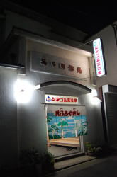 神戸にこんな銭湯があったとは・・・新鮮な驚き。 垂水は神戸の中心地からちょっと西に離れた漁港のある町。駅前は震災後に再開発の巨大ビルが乱立したが、ちょっと離れると昔ながらの家も残っている。 垂水駅から北西に2〜3分歩くと、幹線道路に沿ってどっしりとした和風建築が現れる。ちょっと旅館っぽい印象だ。 ![]() 道路からちょっと奥に入って玄関があるのがいい感じ。小屋根の下に屋号入り電灯が左右に2つ。暖簾をくぐると下足室は細かい格子の天井で、脱衣室入口の木製の戸も重厚だ。 張り紙がイマイチ戸を開けるとまた「男湯」の暖簾があり、番台には90近いと思われるような婆さんが座っている。 脱衣室も濃厚なレトロムード。壁はしっくい、格天井に扇風機が回る。開け放たれた窓の外にはタオル類が干され、その向こうに庭の木が繁る。 木のロッカーは補修のためか外枠にカラー布テープを貼ってあるが、1段ごとにテープの色を変えてある。これがまた不思議に味がある。ロッカー中央には大きな漢数字、古い文字だ。「拾貳」のロッカーを使わせていただく。 浴室に入って驚いた。こいつは初めての光景だ。 浴室の中央に、幅90cm長さ3メートル弱の、楕円形の細長い浴槽がある。何これ? 大人が浸かるには狭いが、周囲には腰かけの段がある。どうやらこの周囲に腰かけて、ここの湯を桶でかい出して体を洗えということか。 んで主浴槽は・・・と、奥のサウナ(有料)の横にある。ジェット気泡が吹き出ているが、これほど遠慮がちな位置にある主浴槽は初めてだ。手前の面がゆるく半円形に飛び出ていて、フチには細かいタイル張り。 主浴槽の奥のタイル壁には、このあたりにはめずらしく大きな絵が豪快に描かれている。山の湖水に白鳥が7羽浮かんでいる風景。だが震災によるものか、左上から右下へとひびが入っている。 入口の両脇に、水風呂と、ジャグジーつきのぬるい浴槽もあり、古いながらも一通りの設備は揃っている。 ただし震災の影響かヒビ割れが随所にあり、やや雑な白セメント補強がボロさを増幅させている。それと天井のペンキが朽ちてめくれ上がっているのが見苦しいので、ぜひとも塗りなおしていただきたいところ。このままだとマニア向けになっちゃうよ〜。 が、それにしても何といっても中央の不思議な細長い楕円槽、銭湯ファンなら一度は見ておくべきだろう。 瓦の乗った外塀も立派。夜には植木の電飾がまたたく |