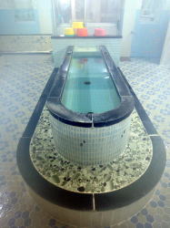 JR鷹取駅から南西へ徒歩10分ちょい。 震災で焼け野原になった駅前通りをまっすぐ歩き、2号線の1筋南の通りを水族園方面へ歩くと、海岸通に出る手前にふいに現れる。 小さいが、四角いコンパクトな外観はちょっと味がある。 暖簾をくぐると、下足室の正面には宝船のモザイクタイル絵のお出迎えだ。 やけにあっさりした宝船脱衣場に入ってまず目をひかれるのは、番台の正面と、その横の入口通路を挟んだ位置にある円柱。1×2cmの細かいタイルがびっちり貼られている。しかもその色が薄紫色なのよね。 めずらしい場所にめずらしい色のめずらしいものが立っている。こいつがなかなか美しい。 ステキな円柱浴室の入口付近もすべて細かい角タイルが隙間なく貼り込まれ、地震で剥げた様子もなく静かに光っている。 ロッカーはアルミ製だが、天井は格天井で、そこから歴史的色彩を帯びた3枚羽プロペラ扇風機がぶら下がっている。 浴室に入ると、いくつか新鮮な驚きが。小さな空間だが、不思議と見どころが多い。 まず、入った正面にかかり湯がある。手前に長い長方形で、この規模の銭湯にしては大きめだ。ここには30度くらいのぬるい湯が張られている。 その背後につながるかたちで、浅・深・ジェットの主浴槽が中央にあり、両サイドが洗い場。床と壁は震災後に貼り直されたっぽい大き目のタイルだが、浴槽は昔ながらの細かいタイル使い。 さらに右手奥には2〜3人サイズのスチームサウナ、左手奥には洞窟風の水風呂がある。スチームサウナ上部の壁には男女ぶち抜きでモザイクタイル絵(アルプスと湖水)がある。 でもいろいろあるわりにゴチャゴチャ感はなく、うまいことコンパクトに配置したなと感心させられる。 天井は男女それぞれが独立した船底になっていて、円形の湯気抜きが1つずつポソッと開いているのが珍しい。 そして、男女仕切り壁の中央と、反対側の壁の中央に、それぞれ1本ずつ、またもや円柱がそそり立っている。しかもここのは太いぞ。そして脱衣場の円柱と同じ細かい薄紫タイルがびっちり。なかなかの見応えだ。 とまあ、古いミニ銭湯にしては妙に味がある。主浴槽を挟んでサウナと水風呂が離れているけど、このスペースでは仕方ないな。 平日の夜7時ごろという空いている時間帯だったが、そこそこお客がいて、みんなけっこう長湯していた。やはり家風呂にはないスチームサウナと水風呂のおかげだろうか。 (2004.2.9) |