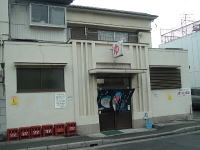 三菱重工などの大工場がある臨海工業地帯、和田岬。地下鉄海岸線とJR和田岬線の駅の少し西、笠松通り商店街を入ってすぐのところにある。 震災の被害が大きかったところだが、笠松湯は昔の造りのまま営業を続けている。 外壁は震災後に塗り直されたと思われるが、レトロな風情をいい感じで残している。屋号の書体になかなか味がある。 商店街の一角で落ち着いた景観を演出下足室から脱衣場へ進むと、ローカルムード漂う脱力空間が迎えてくれる。男女仕切りの上には派手な神棚(稲荷)が祀られ、浴室前の垂れ壁は少しモダンな感じ。 浴室に入ると、よその銭湯とはやや異質な雰囲気が漂う。 広い浴室の中央に、浅深の大きな浴槽がデーン。それだけ。気泡もジェットもなし。あとは壁際にカランが並ぶのみ。 浴室は広いし天井も高い、なのに浴槽が一つだけだから、非常にのびのびとした空間が広がっている。浴槽のへりも厚みがあり、どっしりしている。 なんとなく大陸的な感じだ。 主湯1本勝負かつてはここで、大勢の港湾・工場労働者たちが汗を流したのだろう。軍需産業から高度成長までを真っ黒になってささえてきた労働者たちが、夕方いっせいに集まって一日の疲れを癒した場所。 今は閑散とした空間の真ん中で、大きな湯船にどっぷりと浸かって目を閉じる。しみじみ・・・。 湯船の四隅はカーブしていて小判型に近い。へりには小さな長方形の青タイルがびっしりと貼られている。 タイル張りの床は、カランの手前に排水溝がない。そのかわり浴室の出入り口から2〜3メートルのところにある溝を最低地点として、床全体が奥から手前に傾斜している。 ということは奥で体を洗った人の排水が手前の人の足元を流れて行くのだが、そのへんの配慮のなさもまた土地柄を感じさせる。 奥の壁の手前1.5メートルほどのところに天井から1メートルたらずの鴨居のような垂れ壁があり、そこにアルプスの湖畔をイメージしたモザイクタイル絵がある。 垂れ壁を支える円柱とともに、この浴室の大きなアクセントになっている。 設備はなにもない。でも、大きな空間で大きな湯船にゆっくりと浸かることができる。そんな銭湯だ。(2003.9.17) ※「レトロ銭湯へようこそ関西版」に掲載されました。 ※2016年3月「レトロ銭湯探訪ツアー」が行われました。 当湯番台で販売中!(本書が買える銭湯一覧) |