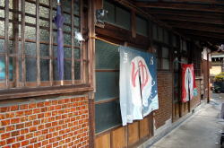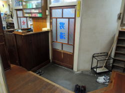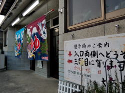 近鉄の伊勢若松駅から平田町行きの支線に乗って鈴鹿市駅下車。 およそ銭湯がなければ乗ることもない列車、降りることもない駅。アホらしくも楽しい旅だ。 5〜6分も歩けば幹線道路の向こうに、鈴鹿市最後の1軒となった風呂屋の煙突が見えてくる。 「いこに! 三重県の銭湯」の桶太郎さんによると、去年あたりまで店主の体調不良かなにかで休業していたのが、今年になって週休3日ながらも復活したのだという。 はやる気持ちを抑えつつ信号を渡ると、道はいきなり狭くなり、お寺の鐘に連なって古式蒼然たる家並みが並んでいる。 三鈴温泉はその連なりの中にあった。 ![]() (左)額の真ん中に気合の「ゆ」 (右)どっちから見ても ![]() (左)向かいの文具屋かなんかも渋すぎ (右)暖簾をくぐっても下駄箱なし 暖簾は男女別だが、くぐると中は共通の玄関スペースになっている。 関西では普通ここで靴を脱いでから脱衣場へ侵入するものだが、ここは靴のまま次のステージへと進む。名古屋あたりで出会うパターンね。 男女別の戸を開けるとタタキに番台&下駄箱、ここでようやく靴を脱ぐことが許される。下駄箱も名古屋式の金属フタだ。 脱衣場は真ん中のベンチで、裸の濡れオヤジが全身から湯気を立てて座っている。サウナが脱衣場にあるパターンか。しかしこんなとこで体をさますなよ邪魔やがな! ・・・とここでフト張り紙を見たら、え? サウナ別料金500円やと! 驚いた。東京以外でこんなに高いサウナ料金は初めて見たぞ。 ふーむ、500円も余計に払ってるとデカイ態度をとりたくなるんか? 番台のおばちゃんも注意しずらい上客ということか? アルミロッカーに脱いだ服を投げ込んで浴室へ。 おお、広々! 脱衣場は窮屈やったけど、浴室は広くて、湯船以外の余白スペースがたっぷりあるぞ。 湯船は深浅の主湯と奥の副浴槽、そして手前に水風呂。どれも大きめサイズで、しかもお湯がなみなみ、入ったらザバーと溢れる極楽風呂ぢゃわいな〜。 主湯はけっこう熱くて俺好み。こいつと水風呂があれば無限に入っていられるもんね。 しかしこの広さならサウナを浴室に作れまっせ! その他、カラン・シャワー類は快調で使い勝手はよい。じっくりあったまれる、よき風呂だ。 復活した三鈴温泉、ここがなくなると鈴鹿市から銭湯の灯が消えてしまう。 サウナ500円の強気がええのか悪いのか知らんけど、とにかくがんばって続けてもらえることを祈る。 (2013.10.27) |