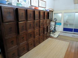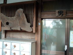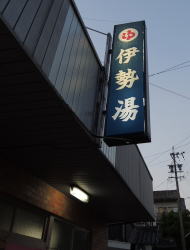 伊勢市駅から外宮内宮スルーして銭湯直行するのがホンマもん。 大通りからちょっと入ると、空き地も目立つ静かな住宅地。その中でポツリンコと地味にたたずむその名も伊勢湯。われこそ伊勢の風呂屋なり。 暖簾くぐればタタキに番台、気さくなおやじさんナイス。 ![]() (左)前ガバ開き番台 (右)タタキ脇の壁の傘さし、このパターン珍しい 脱衣場は正統派のスッキリさん。心が落ち着くクラシカル空間。 アルミロッカー清潔美麗、天井ファンの回転優し。古い建物のエエ雰囲気を維持しながらのほどよい手入れセンスよし。 ![]() (左)男女仕切りの鏡が渋い (右)この小テーブルが最高。居座ってモヒート飲みたい ![]() (左)流し台のウロコタイル! (右)浴室もスッキリさん 浴室は新しいタイルに改装されてレトロ風情は少ないが、石亀やモザイク画などもあって楽しめる。 手前の主湯の気泡がなかなか豪快だ。 ![]() (左)なんで亀…? (右)ドイツかどっかの絵柄 手前の主浴槽に「あつ湯」、奥の副浴槽に「ぬる湯」と表示があるが、温度差は1度くらいかなー。ぬる湯でも42度くらいだから近頃の若者には熱いんかも。 副浴槽は隅の檻に麦飯石らしきものが入っていて、快適なジェット付で心地よし。 古いけどメンテは上々、清潔でじつによい。とくに脱衣場の空気感がよい。ご主人のお人柄によるものだろう。 ここで天井ファンの風に吹かれながらのんびりとカクテルでも飲みたいね…あ、さっきも書いたか。 そんな伊勢の伊勢湯、オーソドックス真っ向勝負なナイス銭湯だ。(2014.5.29) ![]() (左)看板の文字がイイ! (右)暮れゆく伊勢湯 |