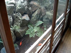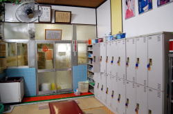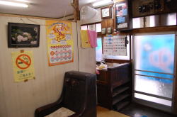 尾鷲駅から商店街を海へ向かってまっすぐ歩き、突き当りで1筋左へずれてさらに進む。そのまま行けば1分ちょいで尾鷲漁港に出るあたり、少し曲がった狭い道沿いに青塗りの木造小家屋あり。 この色と暖簾がなければ銭湯とは気づきにくいたたずまいだけど、玄関上の小屋根と正面タイルがタダ者でないな。 ![]() (左)浴室屋根まで青く塗られている (右)チープに灯る 暖簾をくぐって渋い木のガラス戸を開けると、狭いタタキに番台がある。誰もいないのでコゼニを置いて勝手に上がる。 狭い脱衣所は漢数字の書かれた木のロッカーとマッサージ椅子だけのシンプル空間だ。隅にある流し台の細かなタイルがかわいい。 ![]() (左)番台周辺 (右)脱衣箱周辺 浴室入り口の少し手前で天井が一段高くなっていて、そこから先は壁も天井も外観と同じ青色に塗られている。浴室も同様だ。 三重の銭湯マニア・桶太郎さんによると、これらはすべてここのおかみさんが一人で塗られたものらしい。天井や屋根も脚立やハシゴを立てて塗った苦心作。扇風機の裏まできれいに塗ってあるぞ。仕上がりは素人仕事には見えない。 むー、タダ者でないのはおかみさんであったか。 ハバナブルーなプチ銭湯浴室も小さくて、家庭風呂みたい。壁に接してタイル張りの湯船がひとつポンとあるだけで、気泡もジェットもなんもなし。 だが、かかり湯をした瞬間ちょっと驚いた。 湯はやや熱めだが、ひじょーにまろやかだ。そして新鮮さを感じる。これは名水ではないか。うほっ、心地よか〜。 いくつかあるカランにはシャワーもついていて、コンパクトながら風呂としては十分だ。いろいろ設備が揃った銭湯もいいが、こういう小さなシンプル銭湯もこれはこれで全然よい。 それにしても、いい湯だ。尾鷲は屋久島と並んで降水量が多い土地だから、地下水も森のミネラルをたっぷり含んで常に新鮮なのかもしれないな。 あがるとおかみさんがいた。ここを一人で切り盛りしているらしいが、小柄で細身ながらもめっちゃ元気。よく動きよくしゃべる、港町のざっくばらん系オカーチャンだ。 (2011.2.10) ※「レトロ銭湯へようこそ関西版」に掲載されました。 (本書が買える銭湯一覧) |