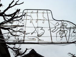 「松阪へ来たら花岡温泉にもぜひ」と桶太郎さんが言っていた。 彼が薦めるならきっと激渋系に違いない。そして三重県の激渋系はシャレならんということを俺はすでに学んでいる。 でもこの日の俺は迷岳というキツイ山に登っての帰り道、どっちかちゅーと設備系のジェットでもみほぐしたりデンキびりびりしたりしたり水風呂ドバーっといきたい気分なのよね。 花岡もたしかに気にはなるが・・・といちおう松阪駅へ戻るバス車中でガラケー検索してみたら、なんと、このバス沿線かいな! 仕方がない。これは行けということだろう。ジェットよデンキよさようなら。 ガラケーのヤフー地図と車窓の景色をにらめっこして、近くっぽい停留所で下車。「小黒田」で降りたかな? もひとつ先でもよかったかも。ちなみに松阪駅へはまだ2.5kmほどある。 国道から東へ入って少し探すと、出ました、写真で見たことのあるアーチ! この瞬間、自分が疲労困憊していることは忘却の彼方へと消し飛んだ。 アーチをくぐって進むと、燃料らしき廃材が山積みされている。 ちなみに屋号は温泉だが湯は温泉でないことは言うまでもない。 ![]() (左)いきなりこれかい! (右)煙突瀕死 その廃材山の向こうにあるのが風呂らしい。質素な玄関が横っちょにあり、金属製の看板が掲げられている。 その玄関付近のゴチャゴチャした感じがいかにもディープ。 ![]() (左)玄関 (右)金看板 ![]() (左)下駄箱&段ボール (右)番台周辺の風情よし 脱衣場は古い銭湯特有のなんともいえん脱力ムードに満ちている。ていうか番台にもどこにも人がおらん。そのへんにテキトーに小銭を置いとこか。 エアコンなどあるわけもなく、むし暑い。やる気なさげなベンチがある。丸椅子もポツン。 なんだか立っているのもアホらしくなってベンチに座る。 でも座ってても仕方ない。のろのろ立ち上がり、服を脱いで浴室へ。 ![]() (左)脱力空間 (右)一目見て、究極系の浴室 きました、これもんです。 中央に四角い湯船ドン。細かいタイルはげはげ。湯はぬるい。非循環。シャワーなし。奥の副浴槽にはお湯がチョビットしかない。 ザ・老築化。説明はもうそれでいいだろう。 重油の高騰で設備系銭湯もバタバタ倒れる中、こういう弩級ディープな薪沸かし銭湯が意外に残ってたりするんよね。とくに三重県。 とりあえず、かかり湯して汗を流してみる。湯に浸かってみる。カランひねって体洗ってみる。水もかぶってみる。 そこらじゅうのタイル剥げや傷みが、そこはかとなく情けない感じを誘う。 ダラーっとしてみる。それなりに筋肉疲労が溶けていく。 ここどこやねん。わざわざ来て何やってんねん。 ほんで俺、なにがこんなにオモロイねん。 銭湯に快適設備や清潔さのみを求める人には、時代遅れのボロ銭湯でしかないだろう。 だが、歴史のハザマに落ち込んでみたい人、ちっぽけなオノレの存在と認識の不確かさを前後左右に揺さぶられたあげく忍び笑いからしまいにゃ単独爆笑ののち精神的な一皮ムケの感触を楽しめる人には、こういう銭湯とのめぐり合わせは奇跡的な体験となる。 ダラダラしてから上がると、人当たりのいいご主人がいた。 いつもなら何かとおしゃべりすることが多いけど、疲れていた俺は少し天気の話をしただけで、ダラダラと服を着て「ありがとう」と外へ出た。 廃材置き場まで戻ったところで、「スタンプはいいんですか?」とご主人が追いかけて来られた。 そう三重県の銭湯はいまスタンプラリー実施中だ。そのためスタンプ目的で常連以外の客がときどき来るのだろう。”この人もそうに違いない、でもうっかりスタンプを忘れて帰ろうとしている”と思われたようだ。 じつを言うと俺はとうにスタンプ台紙をどっかにやってしまい、ラリーとは無関係にあちこち入っている。 そう言うと、「ちょっと待って!」と言って、家から出てきたおかみさんに新しいスタンプ台紙を持ってくるよう依頼し、自分は脱衣場へ取って返して、「これどうぞ!」とよく冷えた缶コーヒーを持って走ってきてくださった。 激渋銭湯の旅では、こういうことがたまにある。 そのたびに俺は泣きそうになる。 (2014.5.30) |