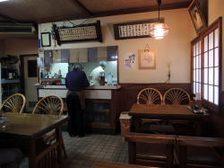 三和本通り商店街の中に、えらい古風な面持ちの食堂がある。 暖簾だけ見ると一杯呑み屋のようでもあるが、右手のショーケースには丼物やうどんなどの和食、左手のガラスケースは洋食と中華で飾られている。どことなく食堂界の横綱相撲を思い起こさせる。 ![]() (左)商店街で独自オーラを放つ (右)郷愁風景 中は昭和の風情満点だが、古いものも磨かれて清潔。大衆食堂ながらも気品を感じる。作り置きのおかずケースはなし。 メニューは和食洋食のほか、八宝菜や中華丼など中華系も充実。おや、オムライスと中華そばのセット1000円などがあるが・・・単品やとオムライス600円、中華そば400円、おんなじやないかーい。 デザートには「クリームみつ豆」もある。昭和40年代にデパート最上階の大食堂で出てたのと同じやつなんやろなぁ。 ハンバーグとエビフライのランチ800円を頼んだら、フォークとナイフをちゃんと紙ナプキンで巻いて出してくれる。めしは大衆食堂的ドカ盛りではなく、福神漬けが添えられていて、これは「ライス」と呼ぶべきものだろう。味噌汁もついてこない。 焼きたて、揚げたて、おいちいな~値段的には特別安いわけではないけど、何といってもこの雰囲気は貴重だ。テレビもなくて静かなひとときを過ごせる。 (2015年1月) |
