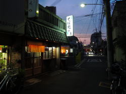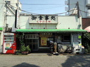 阪神電車の武庫川駅を尼崎市側(東側)へ出て徒歩30秒。武庫川の土手上の道にある。大きなクスノキが生えている神社に近いからこの名前なのだろう。 中は正調、昭和レトロ。テーブル7つ。感じのいいおばちゃんが二人くらいいる。 ![]() (左)おかずケースあり (右)壁にずらっとメニューが貼られている うどん・そば400~500円、丼物500~600円、定食類700円前後とだいたい安いが、中でもお昼時だけのワンコインランチがめっちゃオトクだ。 ![]() (左)豚キムチ定食500円 (右)ワンコインランチは4種類ある ビールセット1000円(大瓶、もやし炒めor豚キムチ、冷奴、味噌汁)なども見逃せない。 一人でモソモソ食っているサラリーマンもいれば、飯もそこそこにしゃべりまくる40代女性の話をうんうんと聞いている初老のおやじもいる。 駅のすぐそばながら、ひなびた昭和の風情と明るいおばちゃんの元で飲み食いする風情がたいへんよい。夜もけっこう遅くまでやってて助かる。 (2015年7月) |