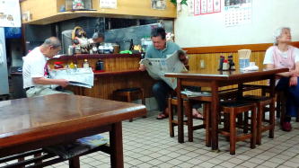 香櫨園駅から南へ、43号線を越えて酒蔵通りを少し東へ行ったとこ。閑静な住宅街に、そこだけ40年くらい時代を遡ったような波板アーケードがある。 その角地にある、1軒の時代がかった食堂。空想を呼ぶ名前もよい。 ![]() (左)角地のため窓が多くて明るい (右)めし小150円、豚汁250円、シャケ300円で計700円 中は意外に広い。入口近くのテーブルと、横のガラスケースにおかずが並んでいる。シャケを選んで、おばちゃんに「これチンしてください」と言う。しばらくすると、温めたシャケに葉っぱとレモンと大根おろしを添えて持ってきてくれた。 他の丼物や定食、麺類は一般的なメニューと値段だ。 午前中から鶏唐でビールをチビチビやりつつ新聞を読んでいるおやじもいる。 何がどうっちゅーこともないけど、明るく広い店内は、土地柄もあるのか、のんびりとした空気が流れている。この界隈では貴重な存在だろう。 たまたま予定が空いた日なんかにブラッと来たいねぇ(2015.2.2) |