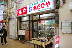 阪急伊丹駅から駅前ひがし商店街を徒歩3分の小さな大衆食堂。。 ショーケースがない代わり、メニューと値段が大きく貼り出されている。かけうどん・そば280円をはじめ、丼物ほぼ550円、定食ほぼ600円など、どれも安い。 さらに店頭には「サービス定食420円」のサンプルが出ている。 ![]() (左)ひがし商店街 (右)入って右におかずケース 店内は改装されて明るく清潔。テーブル6つのこぢんまりサイズだが、11時すぎでも5つは埋まっている。 大きなおかずケースは1皿200円、下段の魚のみ300円とわかりやすい。 厨房はおやじさん、ホールはおばちゃん一人で切り回している。 あとからあとからやってくる昼の客。その多くは「サービス」「サービスごはん小」「サービス粕汁で」などと言いながら入ってくる。 この日のサービス定食はから揚げだったサービス定食420円は注文して15秒以内に来る。みなそれを10分以内で食って出ていく。 余計な会話もなく流れるような風景。ファーストフード食堂といえるかもしれない。いや、出てくる速さはそのへんの大手ファーストフード店を確実に凌いでいるだろう。 昼さがりから夜には普通の食堂のようなのんびりした光景が見られるのかもしれないが、ともかく速さと高いコスト・パフォーマンスで大人気、小さいながらも存在感のある食堂だ。 (2015年3月) |