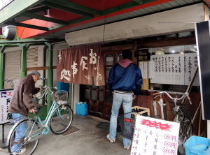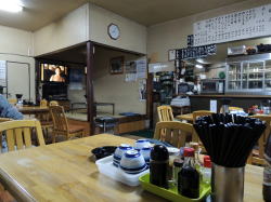 山電の終点、網干駅から南へ6~7分歩くと、漁船の並ぶ東雲橋の手前に古めかしくも立派な大衆食堂が現れる。 目がクギ付けになる・・・かつて繁栄を極めたであろう、地域の盟主的な立派な食堂。それが今、ここに残って、現役で営業している! 内部は外観を超える奇跡っぷりだ。 入ってすぐ正面におでん器とおかずケース。右側に広い厨房、中央には直角の背板で区切られたテーブル3卓。 そして何と言っても目を引くのは左側の長テーブル。真ん中に1枚の衝立があって、向かい合った客どうしが顔を合わさないようカウンター状になっている。 ![]() (左)厨房前の垂れ壁にメニューがズラリ (右)開店直後で、おかずはまだ少なかった ![]() (左)長テーブルの中央に衝立が (右)長テーブルの後ろには小上がりも2卓あり 店は物腰やわらかなおやじさんとおかみさんの二人で切り回しておられる。 長テーブルに座ると、おかみさんがおしぼりを出してくれた。大衆食堂ではレアなサービスだ。 おかずケースから「あらだき280円」を選んでチンしてもらい、めし小230円と豚汁180円を注文した。計690円。 めしは大と小しかなく、小で230円とはチト高いな。しかも大250円と20円しか違わない。 でもそれ以外は、うどん350円、中華そば450円、親子丼・カレーライス600円など一般的な値段。 ![]() (左)衝立前のわがメシ (右)わがメシ拡大 それにしても、この映画のセットのような本物空間で食べるめし……感動プライスレスだ。 この店でもう一つ特筆すべきことは、おでんの安さだ。 大根、こんにゃく、玉子は60円。すじ120円。その他は全部80円。めしが高いことを考えると、おでんとオカズで一杯やるという使い方のほうがいいかも。 (2015年2月) |