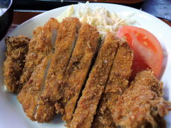 甲子園駅から徒歩5分ほどの穴場的食堂。お昼の2時間しかやってない。 激しい交通量の43号線に面しているが、一歩店内に入ると鄙びた昭和の別世界だ。 店には駐車場もないし付近は普通の住宅地なので、さして混み合うわけでもない。 なので、昔ながらの店内でボーッと昼飯を食うことができる。 ![]() (左)おちつける店内 (右)目玉200円、豚汁250円、めし小140円、合計590円 2時間しかやってないけど、丼物からうどん、そば、カレーライス、中華そばまで揃うし、焼魚や煮付のおかずケースもちゃんとある。 めしは大でも170円と良心的。 ただしアルコール類は置いていない。それが最大の特徴かも。 おだやかなおかみさんと、おやじさんのお人柄がじつによい。ここがすっかり気に入って通っているおじさん客もニコニコしてて、とても和める。 (2014.5.8) |