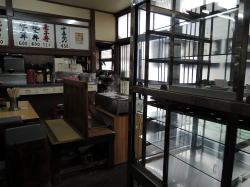 神戸電鉄三木駅から徒歩5~6分。古い街道沿いにある。年季の入ったモダンな外観にキュンとくる。店頭に餅などが並び、奥まったところに食堂の入口がある。 甘味処が餅や赤飯を置き、その延長で大衆食堂化する場合がある。京都をはじめ関西各地にある力餅食堂などはその代表だが、ここもその系統といえるだろう。 ![]() (左)ストーブに干されたタオルが茶色くコゲている (右)赤飯定食400円 うどん類300~400円台、丼物が400~500円台。ぜんざい480円、ぞうに430円、赤飯150円などもあるのが甘味処らしい。 店はおじいちゃんとおばあちゃん二人で切り盛りされている。 食べるミルクセーキ!この店の名物は何と言ってもミルクセーキ450円だ。フローズンだが、なぜか溶けない。練乳が決め手なのだろう。素朴な甘さであっさりしており、口に入れた瞬間、目を見開いて「おぉ、うまい!」とつぶやいてしまった。大手チェーンのナントカシェークなんかとは比べ物にならんね。 これを真冬に、だるまストーブの横で食べる・・・贅沢なひとときだ。 赤飯定食は赤飯に味噌汁と漬物がついただけだが、ちょうど良い塩味加減で、丁寧に作っておられることが察せられる味だった。 「新沼けんじや森脇健二も来たよ」と話してくれる、おじいさんおばあさんお二人のお人柄も合わせて、「来てよかった~」としみじみ余韻の残る名店だ。 (2015年2月) |