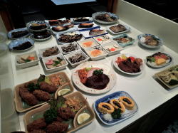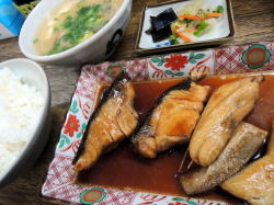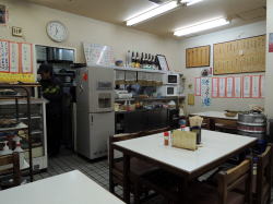 山電の西新町駅から徒歩5分ほど、国道2号沿いにある。 長テーブルと小テーブル一つ、カウンター数席だけの小さな食堂だが、なんといっても2つのガラスケースいっぱいに仕込まれたおかずの豊富さが嬉しい。 しかも安いやん! 片っ端から食いたくなる。 この業界としては若手の50代夫婦が次々におかずを作っては補充していく。 ![]() (左)店内 (右)豪華にいっとこ! 焼魚や煮付はほぼ300円 壁メニューは、うどんや中華そば300~400円台、丼物400~500円台。めし大中小は170・150・120円、味噌汁100粕汁150豚汁200円。関東煮もあります1ヶ80円。文句なし。 ただし昼間は忙しいため、炒め物や豚生姜焼(300円)、トンカツ(350円)などは「夕食限定メニュー」なのがちょい残念か。 それでもどんどんお客が回転する、大衆食堂の鏡のような小気味よい人気店だ。 (2015年1月) |