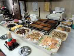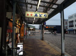 明石と淡路島の岩屋を結ぶ高速艇ジェノバライン乗船場前には、かつて4軒の食堂が並んでいたが、今では2軒のみ。そのうち大きいほうがこのみどり食堂。 店内は改装されて美しく、テーブルが10ほどもある。おかずの種類やメニューも多くて目移りする。値段の表示もわかりやすい。 三角巾をかぶった女性店員さんに尋ねながら、なんやかやと皿を取ったり注文したり。 ![]() (左)右奥の黒いのがジェノバライン乗り場 (右)店内は広々、奥に厨房 ![]() (左)おかずの数々 (右)こっちにも並んでます 値段は大衆食堂としては微妙にお高めかも……から揚げ定食790円、とんかつ定食900円。ビールは大瓶580円、生中500円。単品は焼サバor煮サバ410円、コロッケ135円などなど。 しかしそれも許せる品数の豊富さだ。 ![]() (左)すずき味噌漬け490円、ウマイ! (右)粕汁290円、卯の花225円 ![]() (左)明石といえば焼きアナゴ540円 (右)意外にうまい特製ラーメン500円 港町らしく魚介類もいろいろあるから居酒屋づかいもよし。 (2015年1月) |