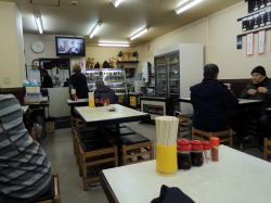 近鉄四日市駅前、一番街商店街の入口手前にある真新しいビル1階に入っている。 チェーン居酒屋の「庄や」と並んでいて、閉店時の外観に渋さは微塵もない。だがシャッターが開いて暖簾が下げられるや、とたんにええ感じの大衆食堂が現れる。 威勢のよい30代くらいの女性店員が注文を聞きに来る。おかずケースから鯖煮を選んでチンしてもらい、壁のメニューを見たら…おや? めずらしや、「麦めし」がある! でも250円か・・・とりあえず小で。 ![]() (左)新しく明るいけど雰囲気はモロに昔ながら (右)さば煮、たぶん350円 ![]() (左)豚汁200円、赤だし! (右)麦めし小、たぶん200円 定食ものは780円~、カレーやオムライスは600~700円、丼物は750円~、白めし(中)250円、と微妙に高めか・・・でも魚を中心に一品ものが充実しているのが嬉しい。 ほとんどの客は開店直後から飲んでいる。 俺は麦めし小、さば煮、豚汁で750円。 大衆食堂として安いほうではないが、便利な駅前だし昼飲みにもよし。くだけた雰囲気も悪くない。 (2015年1月) |