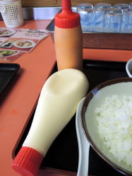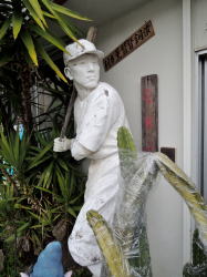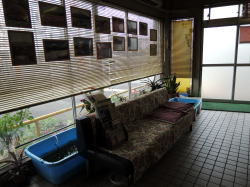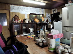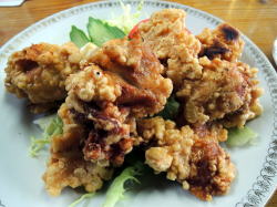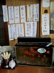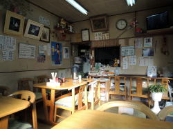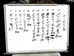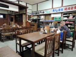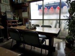 尾鷲駅を出て駅前ロータリーで左を向いたらそこにある食堂。一等地だが若干あやしげなケハイを漂わせている。 ![]() (左)駅から10秒 (右)汚れた椅子に置かれたホワイトボード ホワイトボードでは値段をグルグルっと黒く塗って書き直されている。指でチョイっとやれば消えるのに。「カーレライス」は書き直さなくてもいいのだろうか。 そして玄関先のビニールで覆われたサボテンの後ろに、真っ白な野球選手がいる。横の板に「別当薫監督銅像」と書かれているが、どう見ても銅像ではない。 どこから持ってきたのだろうか店内に入ってすぐ左に大きな観葉植物があるが、それにやった水が溢れて床に溜まっている。 ひょうひょうと真面目な、60代後半くらいのおやじさんが迎えてくれる。 テーブルは手前に4人掛け、奥に6~8人掛けがあるが、大きいほうは置かれているモノが多くて実質2~4人掛け。 奥の戸棚付近もなにやらゴチャゴチャとモノ多し。そして冷蔵庫の汚れが若干目立つ。元が白いだけに。 ![]() (左)4人がけテーブルと床の水 (右)モノ多し メニューはそこらの壁に貼られている。値段は標準的だが、品数は豊富だ。 ![]() (左)金魚もたっぷり (右)からあげドカーン この店の特長は、なんといっても量の多さだろう。 以前イカ唐揚げ(単品)650円を頼んだときは、見たこともないほどテンコ盛りのイカ唐揚げが大皿に載ってきて、それをソロリソロリと運んでくるおやじさんの姿に笑いが止まらなかった。とうてい食える量ではなく半分残した。 今回は鶏カラアゲ(単品)650円を頼んだが、ゲソ天ほどではないにせよ相当な量があった。幸いビール1本でなんとか食えた。 ご飯ものもきっとエゲツない山盛りのような気がする。だからよう頼まん。 でもコスパの点では優れていることは間違いない。何人かでシェアしたらめっちゃオトクに楽しめるだろう。ビール大瓶620円だけがチト残念だ。 (2015年3月) |