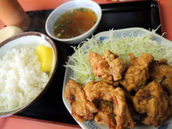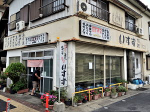 近鉄の宮町駅が近いが、伊勢市駅からテクテク歩いてたら踏切の真横に現れた。 中に入ると、キッチンをカウンターが囲むラーメン店的スタイル。 そして、普通ならテーブルがありそうな場所に、おそらくは順番待ち用の長椅子が置かれ、その背後にはなぜかポリケースが並んで金魚飼育中だ。 くつろぎのスペースといえなくもないメニューを見ると、焼ぎょうざ450円に始まって、焼きそば550円、野菜炒め400円など、中華系っぽいけど品数は多くない。めしは小でも200円。 でも特筆すべきは「ランチメニュー」だろう。ランチとは言いながらも「お昼時間以外でもお召し上がりいただけます」とある。おもに「もも唐揚げ定食」「野菜炒め定食」「ラーメンセット」、すべてワンコイン500円。 単品500円のもも唐揚げが、ランチならめしとスープがついても500円。ほな、めし小200円の立場はどないなるねんと言いたくなるが、ともかくランチがお得だ。 から揚げはボリュームたっぷり、7個ぐらいついとるで。そしてジューシーでうまい。キャベツにマヨネーズとドレッシングもかけ放題だ。 ![]() (左)もも唐揚げ定食500円! (右)さあかけまくれ! メニューでもうひとつ気になるのは「いすずのラーメントリオ」。 ラーメン400円、中華そば550円、五目ラーメン550円の三つが書いてある。ラーメンより中華そばのほうが高いのは珍しい。 中華そばの下に「昔からのいすずの定番」とあるので、同行者はそれを注文。やってきたのは、しょうゆ味ラーメンに肉野菜炒めが豪快に乗った一品だった。 一般的な中華そばに非ず夜遅くまでやっておられるので、晩飯を食いっぱぐれて夜中に腹減ったとき重宝しそうな店ね。 (2015年8月) |