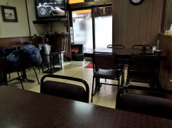 要町からややこしい道を徒歩7~8分、池袋からなら10分くらい。やや入り込んだ入口に遠慮がちな暖簾がかかっている。 中に入ると閑静にして見事な昭和空間。でも4人テーブル×3に対して2人テーブル×5と、少人数を想定したテーブル配置がちょっと変わっている。 ![]() (左)静かな店内 (右)2人がけテーブルが並んでいる 卓上メニューを見たら、どれも安いやん! 「とんかつ」も「豚しょうが焼」も320円、オムレツ200円やとう! 丼物や洋食は500~700円台。ラーメン490円。 おばちゃんも感じエエし、なんかここすでに気に入ったわ。 そのメニューから、めし小120円、味噌汁60円(!)、ハムエッグ180円を注文した。計360円の朝めし。じゅうぶんやん。 しかも味噌汁は60円やのにワカメうまい。ハムエッグも過去最安値やぞ、一つ玉やけど。 めしは小でもたっぷり料理は奥の厨房でおやじさんが作っているようだ。 俺が来たのは11時半ごろで、相客ははじめ60歳くらいの夫婦一組だったが、12時近くになると初老の4人組、さらに常連ぽいおっちゃん一人が来た。 そのおっちゃん客が4人組に、 「あそこん中におかずが並んでるから、そこから選べるよ」と厨房の窓口を指している。それで俺も初めて作り置きおかずの存在に気づいた。 厨房の窓口から覗くと、厨房内は広く、覗いたところにいろいろウマそうなおかずが並んでいるではないか。 ![]() (左)あそこが厨房窓口 (右)おおお! 朝っぱらから刺身やらなんやら豊富やんか! 雰囲気、値段、料理、すべてよし。また来なければ! (2015年4月) |