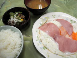 練馬区役所の近くに、凄みさえ感じさせる激渋食堂がある。表に貼られたメニューがえらい安いで! ということで練馬在住の息子と8時半に朝メシ食いに来た。 魅かれる!中に入るとカウンターのみの狭い店で、7~8人で満席になる。それがけっこういっぱいやん。先客の背中と壁のスキマをすり抜けて、真ん中あたりのカウンターに座った。 カウンター内にはかなり高齢のおばあさんがお一人。休みなしでやっているという。 頭上に一品ものメニューが豊富にズラッと貼ってある。カウンターとおばあさんの間に、おかずケースが置かれている。カレイ煮付けがうまそうだ。 ![]() (左)この狭さ (右)おかずケース 左側の中年カップルは朝から飲んでいる。右側は大阪弁の酔っ払い女と男ダチ2人ほど、やはり飲んでいる。 どう見ても朝まで飲んでの帰りやな。両側でタバコすぱすぱ吸いやがって。 ごはん+味噌汁+漬物で200円だ。俺はそれにハムエッグ350円、息子は塩サバ350円。 間違いのない安心おふくろ味、二人で1100円だった。 ハムエッグ整っているおばあさんが一人で切り盛りするミニ食堂は、たいてい客も年寄りなことが多い。だが、さすがは東京というべきか。幅広いニーズがあるようだ。 しかし休みなしとはね・・・客としては有難いけど、おばあさん、お体を大切にやっておくれよ~。 ファーストフード店やファミレスのパートでこき使われているオカーチャン方は、ぜひこういう店をばんばん開いてもらいたいものだ。安くておいしければ、ぜったい流行る。 (2015年4月) |