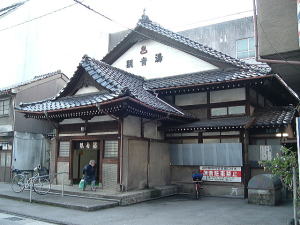 今日の宿は高岡にとっているが、まだ晩めしには早いので、富山市の有名な観音湯に行ってみることにした。